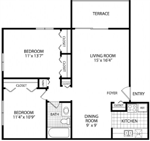 2 Dormitorios, 1 Baño, 950 pies²Disponible AhoraGalería del Modelo