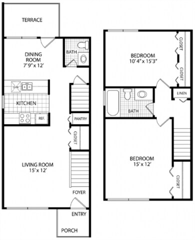 Modelo de apartamento: Two Bedroom Townhouse2 Dormitorios, 1 Baño, 1150 sq ftDisponible AhoraTwo Bedroom Townhouse - Plano 1 Unidad de apartamento: 03-04Modelo de apartamento: Two Bedroom Townhouse2 Dormitorios, 1 Baño, 1150 sq ftDisponible Ahora