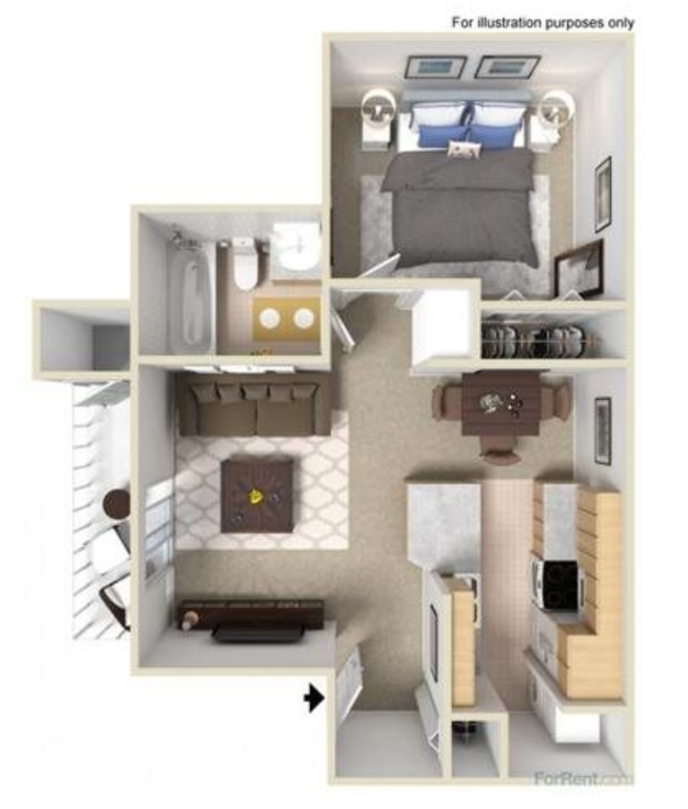 Modelo de apartamento: One BedroomLlame para Precios1 Dormitorio, 1 Baño, 626 sq ftNo DisponiblePlanosFotos![]()
