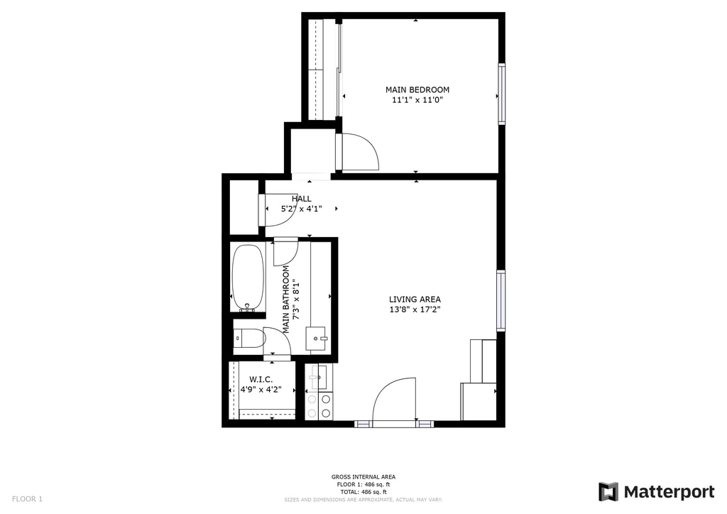 1 Dormitorio, 1 Baño, 486 pies²Disponible AhoraGalería del Modelo