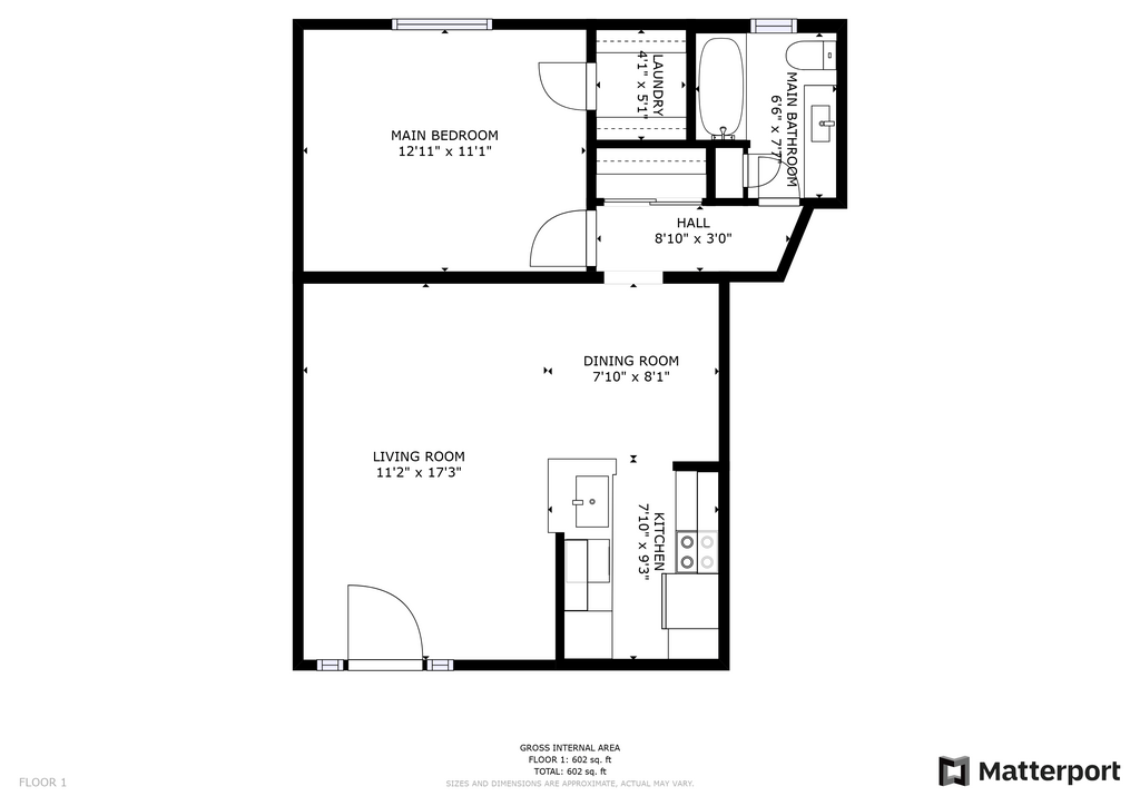 Modelo de apartamento: A1Desde $1,0501 Dormitorio, 1 Baño, 602 sq ftDisponible Ahora![]()