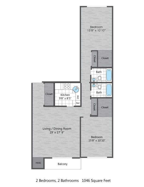 Modelo de apartamento: 2BR/2BALlame para Precios2 Dormitorios, 2 Baños, 1046 sq ftNo Disponible![]()