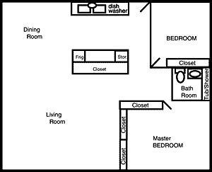 2 Dormitorios, 1 Baño, 850 pies²Galería del Modelo