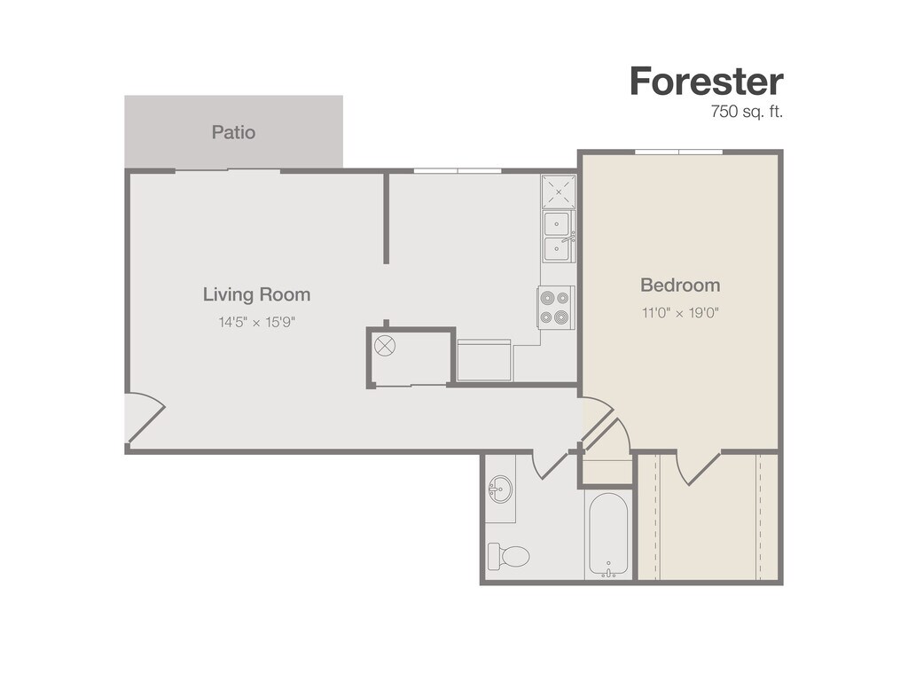 Modelo de apartamento: Forester$1,5191 Dormitorio, 1 Baño, 750 sq ftDisponible June 10, 2026![]()