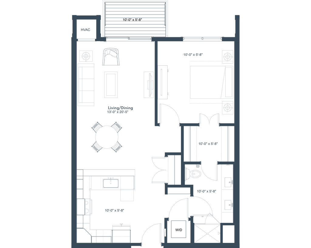 1 Dormitorio, 1 Baño, 726 pies²Galería del Modelo