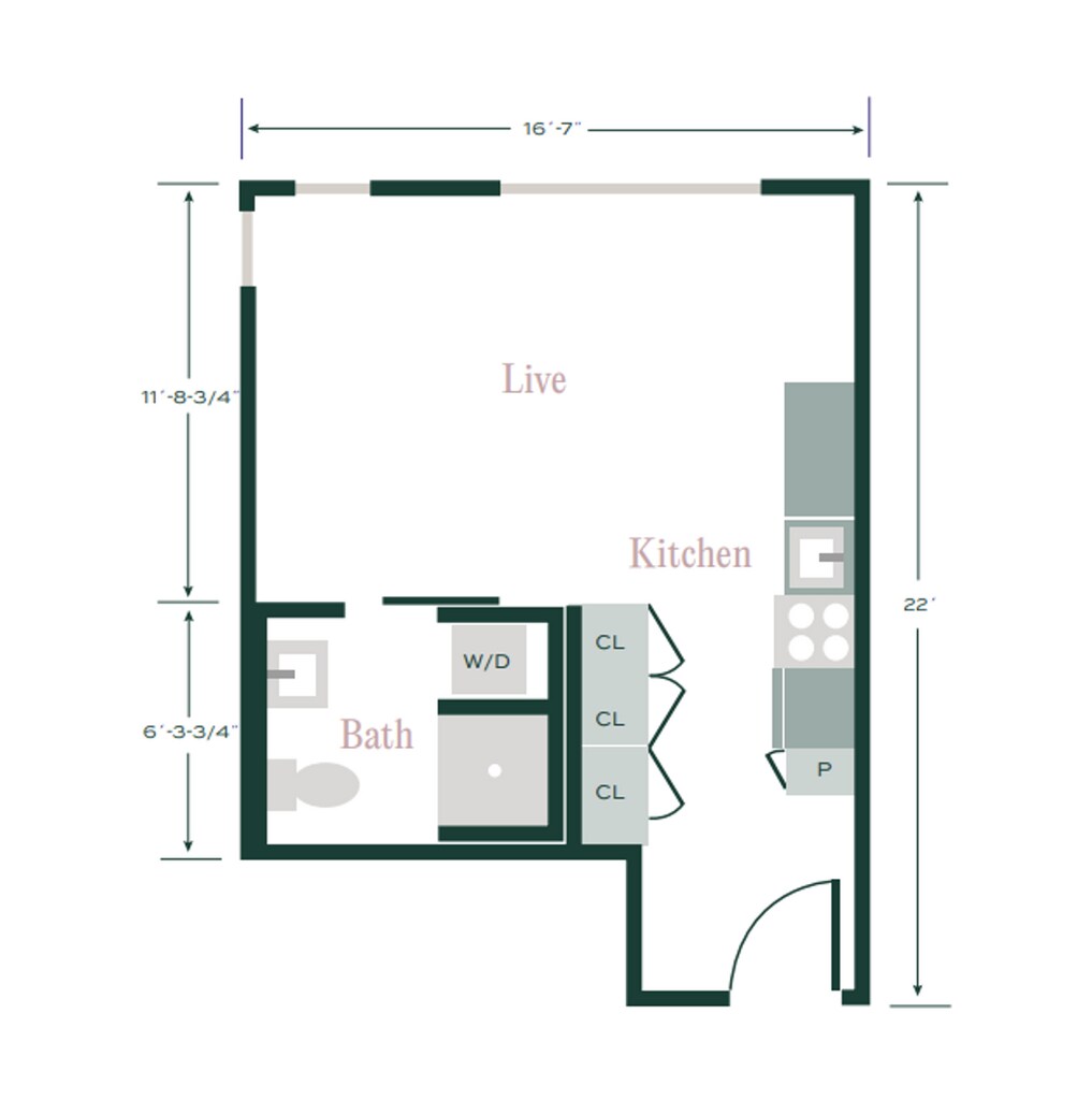 Unidad: 216 - Imagen 10 Unidad de apartamento: 217Modelo de apartamento: 0BR/1.0BAEstudio, 1 Baño, 319 sq ftDisponible Ahora![]()