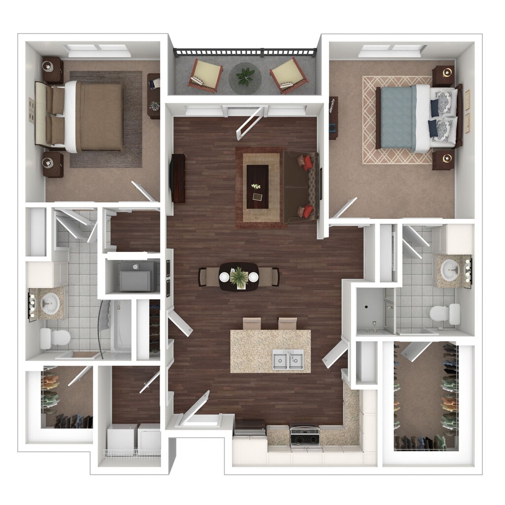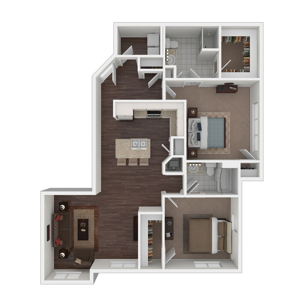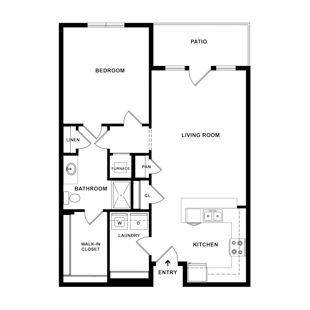1 Dormitorio, 1 Baño, 1064 pies²El más grandeEsta opción tiene las unidades más grandes para este modeloGalería del Modelo