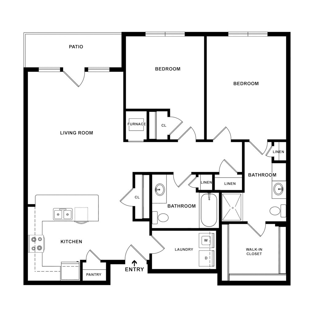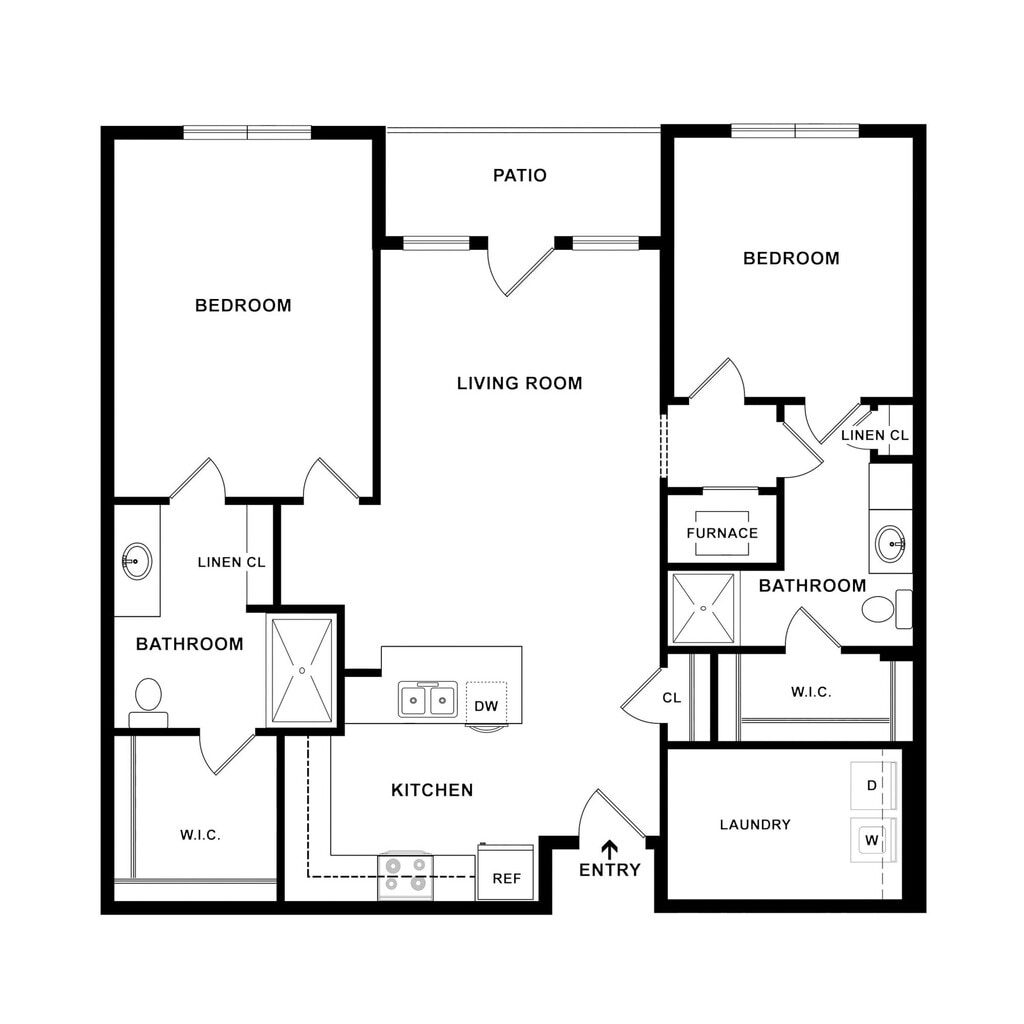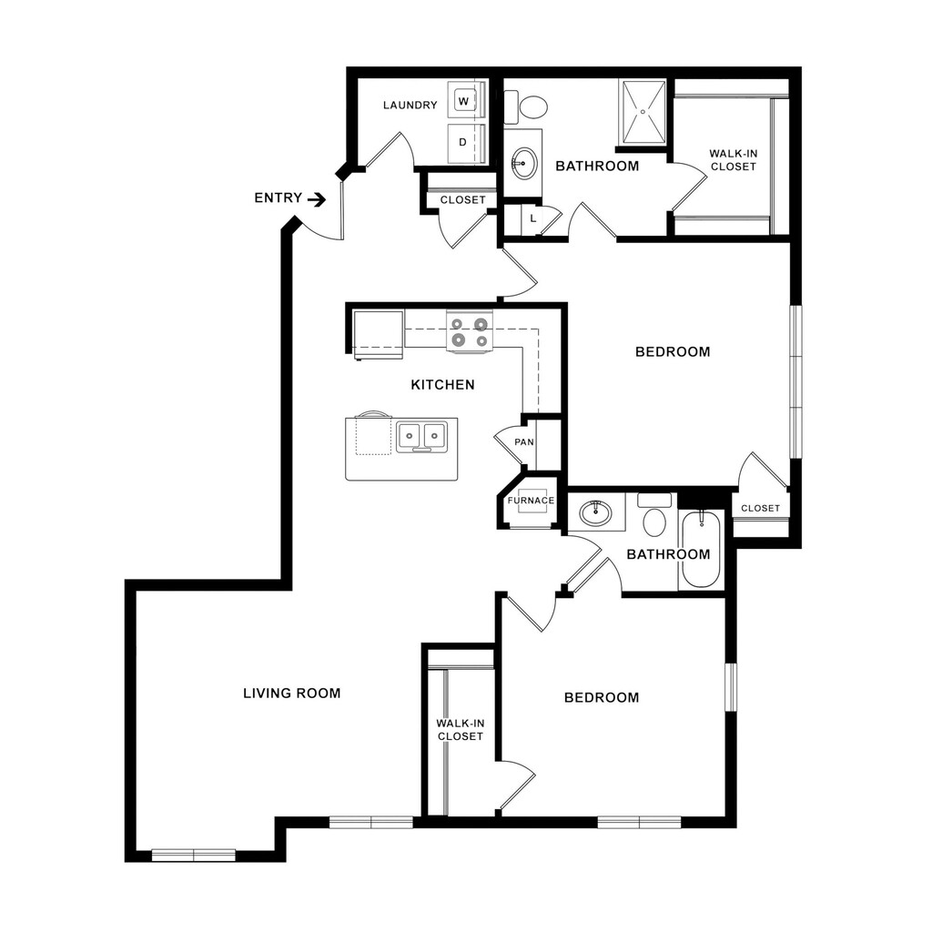 1 Dormitorio, 1 Baño, 1064 pies²El más grandeEsta opción tiene las unidades más grandes para este modeloGalería del Modelo