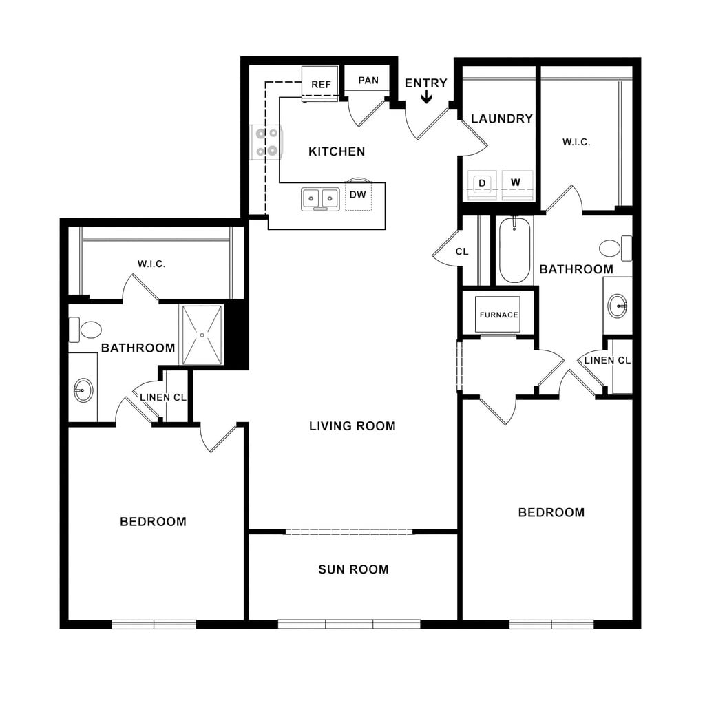 Modelo de apartamento: 1 Bedroom Traditions w/SunroomDesde $1,6701 Dormitorio, 1 Baño, 1064 sq ftNo Disponible![]()