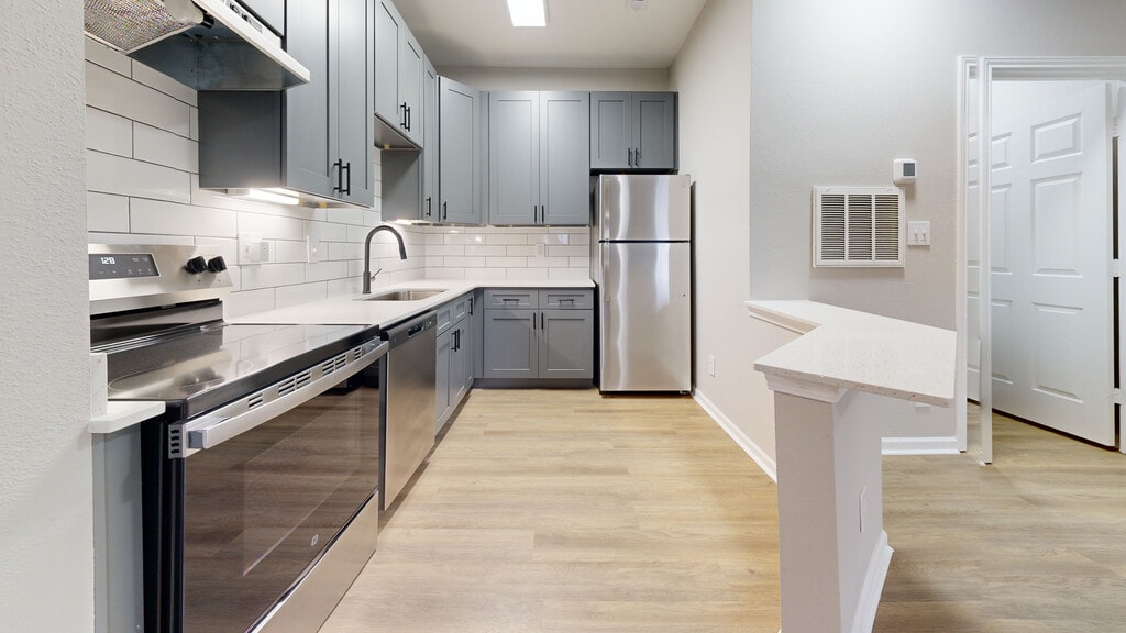 Modelo de apartamento: DominionDesde $1,4431 Dormitorio, 1 Baño, 671 sq ftDisponible AhoraLos planos son representaciones artísticas. Todas las dimensiones son aproximadas. El producto y las especificaciones reales pueden variar en tamaño o detalle. No todas las características están disponibles en cada vivienda en alquiler. Por favor, consulta con un representante para obtener más detalles.