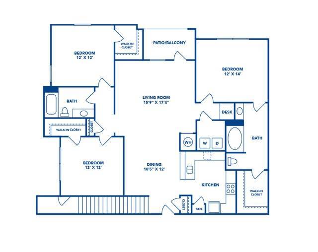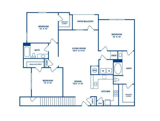 B2G - Plano 3 Unidad de apartamento: 09-101Modelo de apartamento: B2G2 Dormitorios, 2 Baños, 1312 sq ftDisponible December 17, 20253 Dormitorios