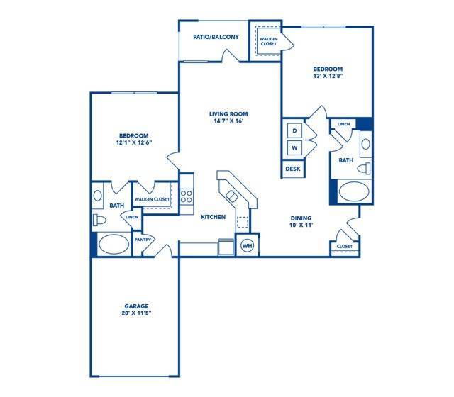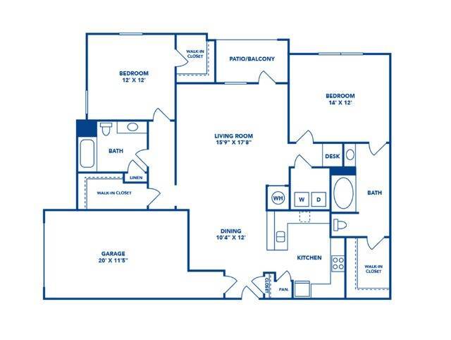 Modelo de apartamento: B12 Dormitorios, 2 Baños, 1177 sq ftDisponible Ahora![]()