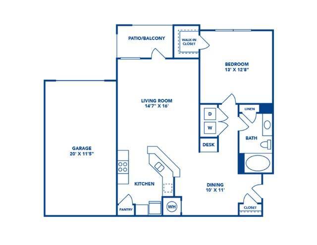 Modelo de apartamento: E11 Dormitorio, 1 Baño, 702 sq ftNo Disponible![]()