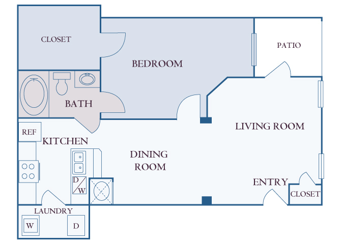Modelo de apartamento: A1Desde $1,6181 Dormitorio, 1 Baño, 675 sq ftDisponible Ahora![]()