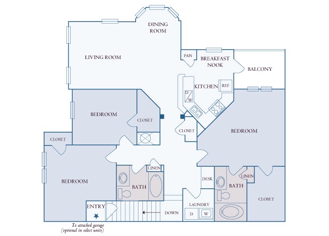 Modelo de apartamento: A2Llame para Precios1 Dormitorio, 1 Baño, 822 sq ftNo Disponible![]()