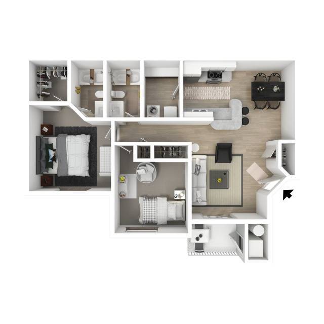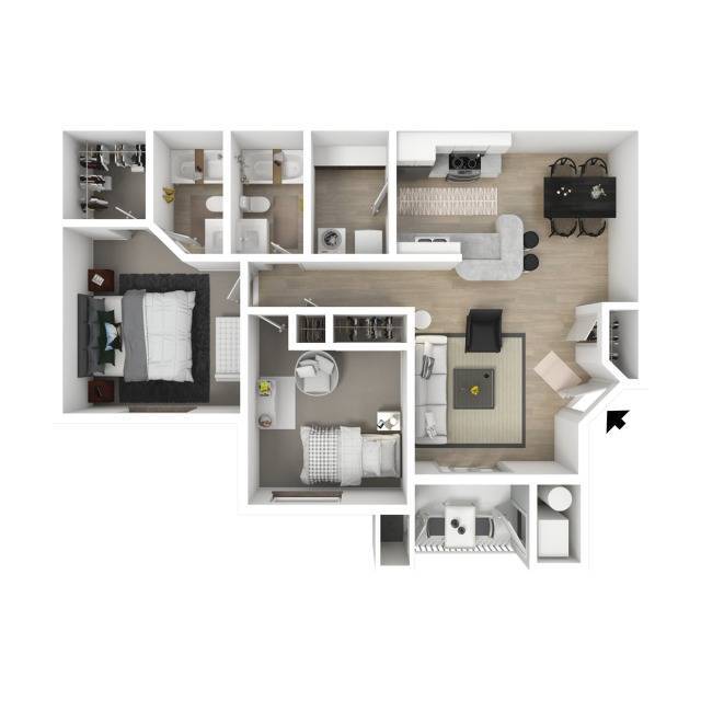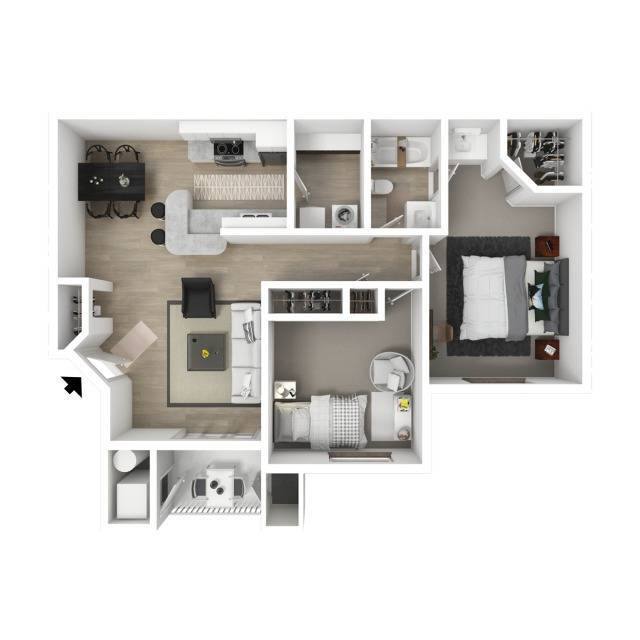 1 Dormitorio, 1 Baño, 761 pies²Disponible AhoraEl más grandeEsta opción tiene las unidades más grandes para este modeloGalería del Modelo
