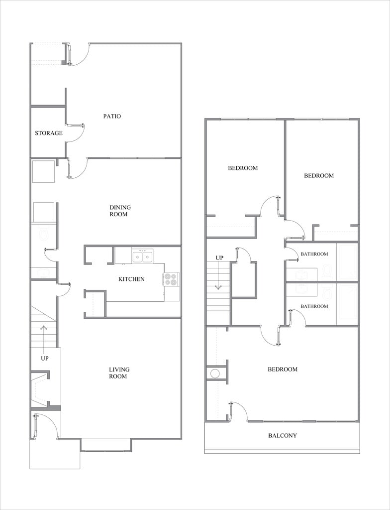 3 Bedroom Townhome - Plano 1 3 Bedroom Townhome Renovated
