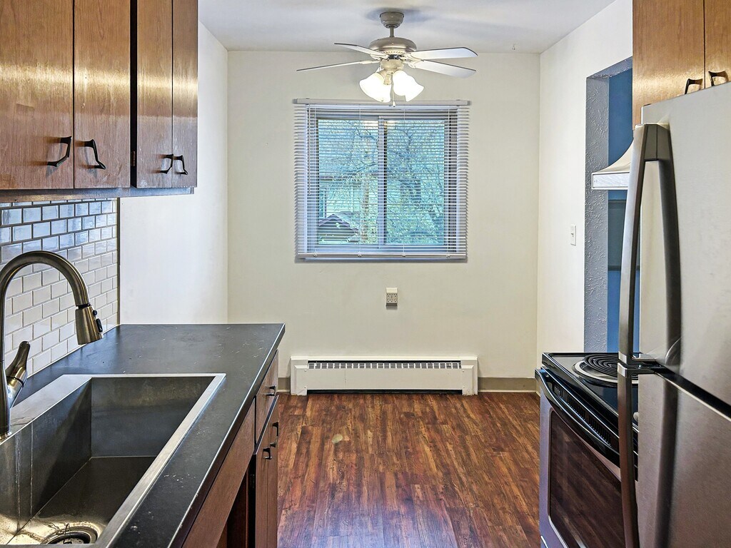 ¡Recientemente renovados! Amplio apartamento de 2 habitaciones - Este amplio apartamento de 2 habitaciones está ubicado en un complejo de apartamentos muy bien administrado y renovado llamado Carroll Court en Merriam Park. El apartamento ha sido completamente renovado con pisos nuevos, encimeras de cocina, azulejos, electrodomésticos y mucho más. Hay una gran cantidad de armarios y armario de almacenaje privado en las cercanías al que se puede acceder desde el pasillo principal, que es perfecto para bicicletas, cajas y aspiradora. Comodidades internas: Electrodomésticos nuevos Pisos de vinilo de madera nuevos Encimera de cocina nueva Placa para salpicaduras de azulejos de metro de cocina nuevos Fregadero y grifo de cocina nuevos y grandes Pintura fresca en todo el lugar Aire acondicionado de pared con control remoto (RLNE5980768)