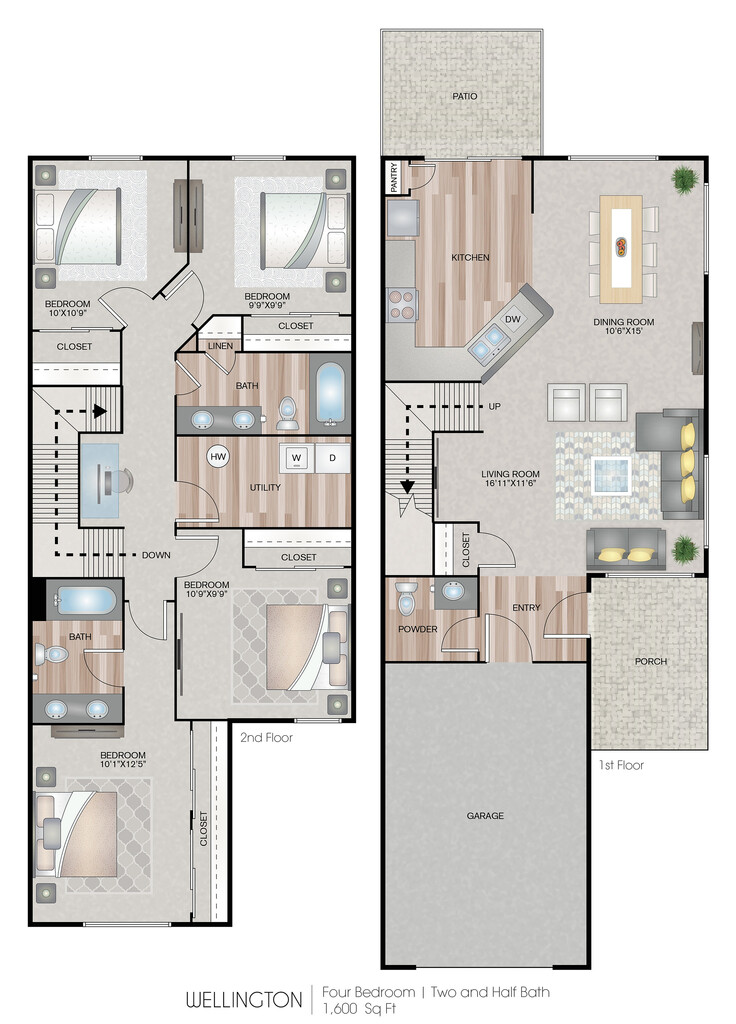 4 Dormitorios, 2.5 Baños, 1599 pies²Disponible AhoraGalería del Modelo