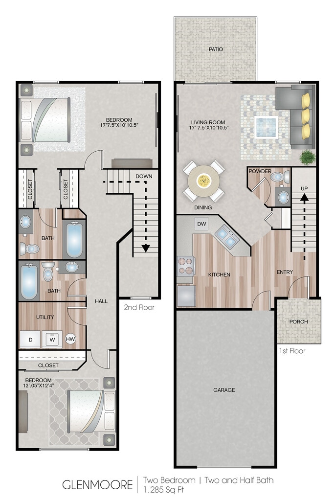 Modelo de apartamento: GlenmoorDesde $2,1152 Dormitorios, 2.5 Baños, 1281 sq ftDisponible February 10, 2026![]()