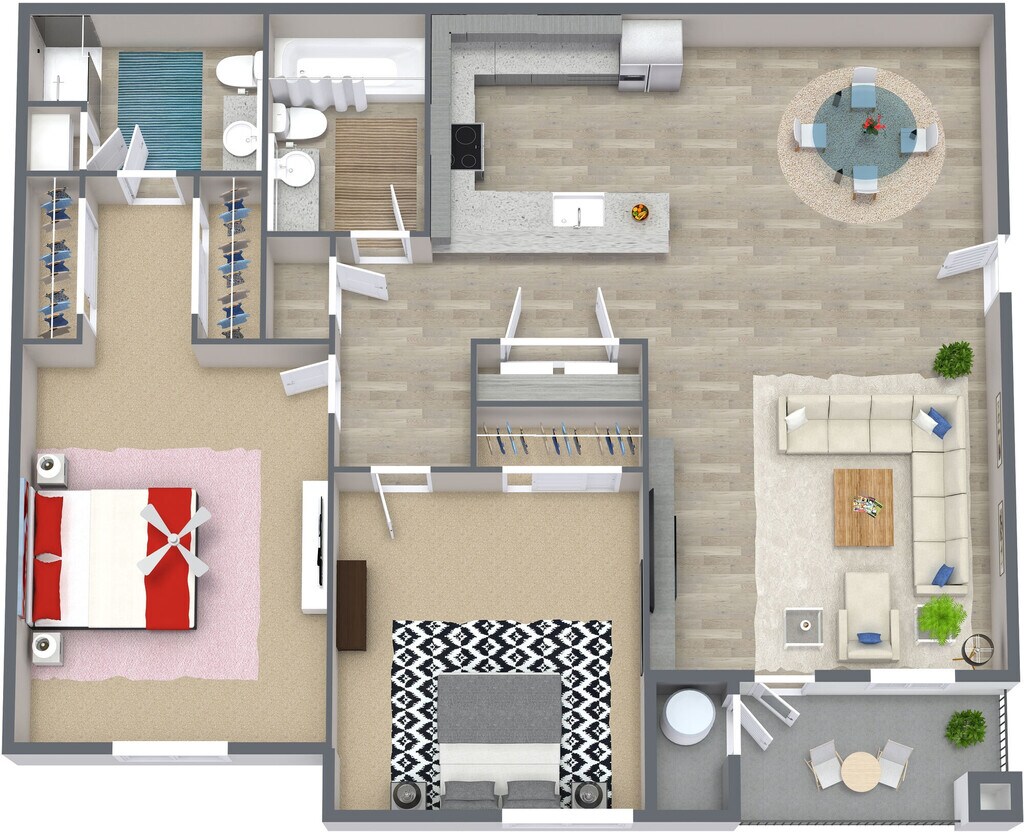 2 Dormitorios, 2 Baños, 987 pies²Precio Mensual TotalDisponible AhoraGalería del Modelo