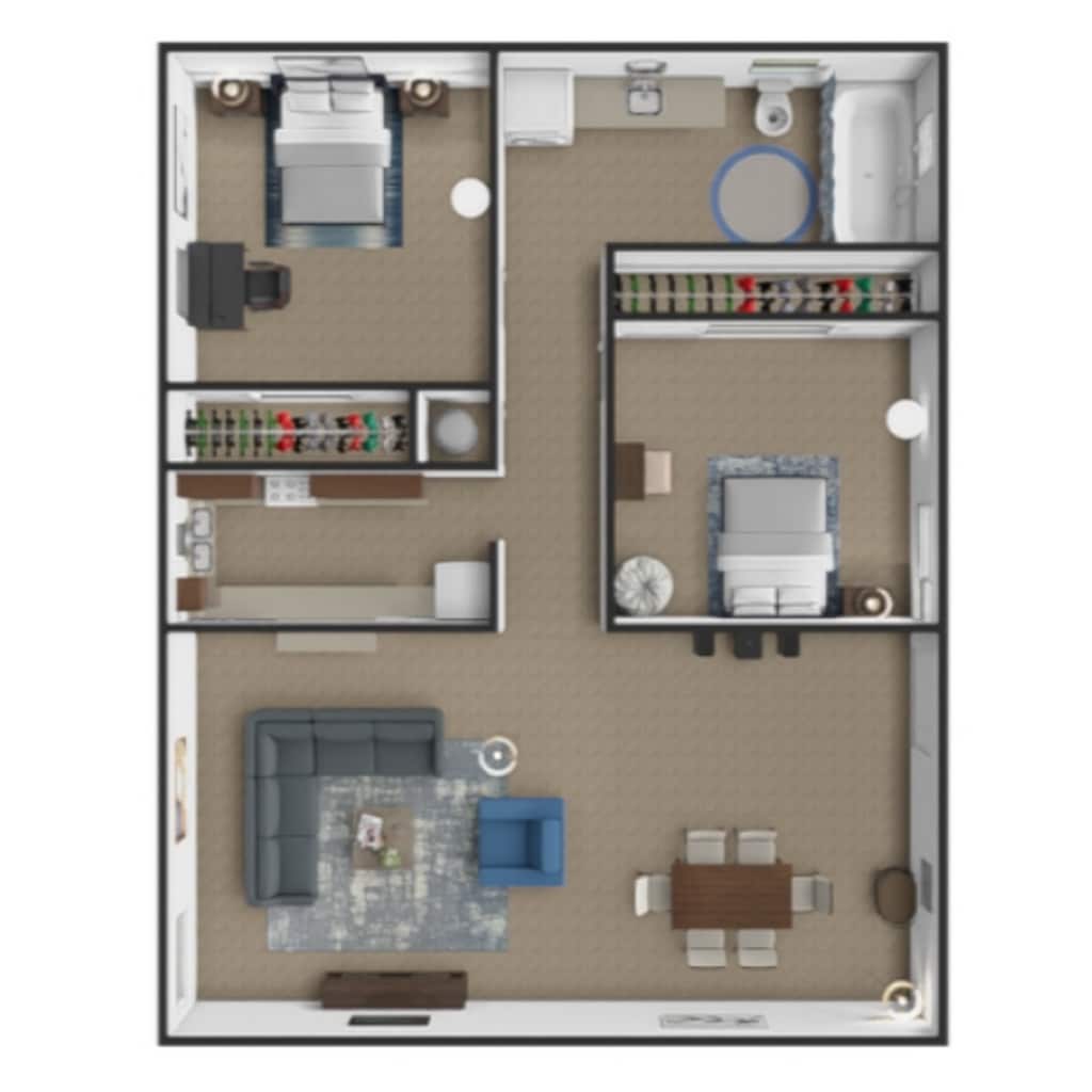2 Dormitorios, 1 Baño, 760 pies²Disponible AhoraGalería del Modelo