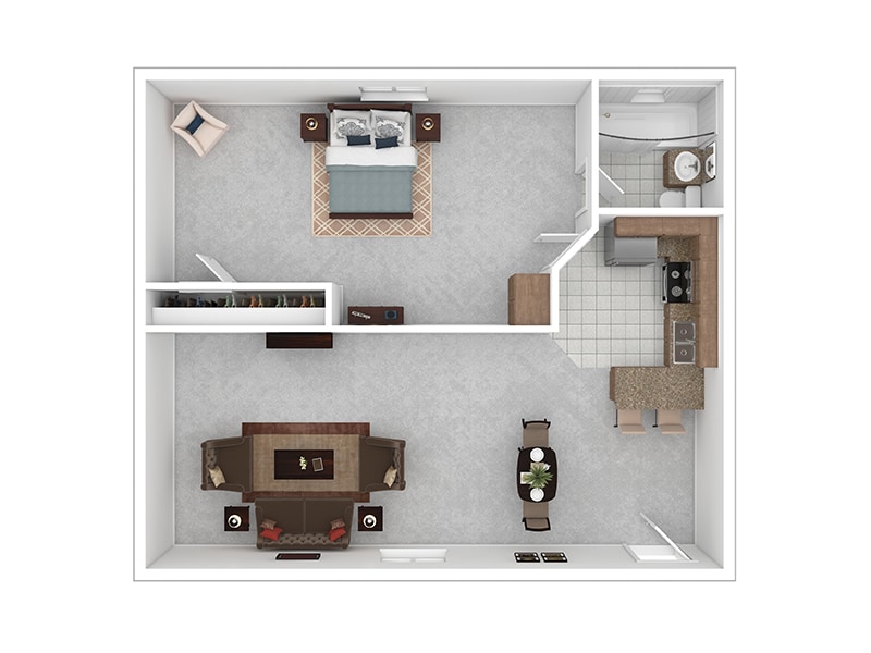 1 Dormitorio, 1 Baño, 483 pies²Disponible AhoraGalería del Modelo