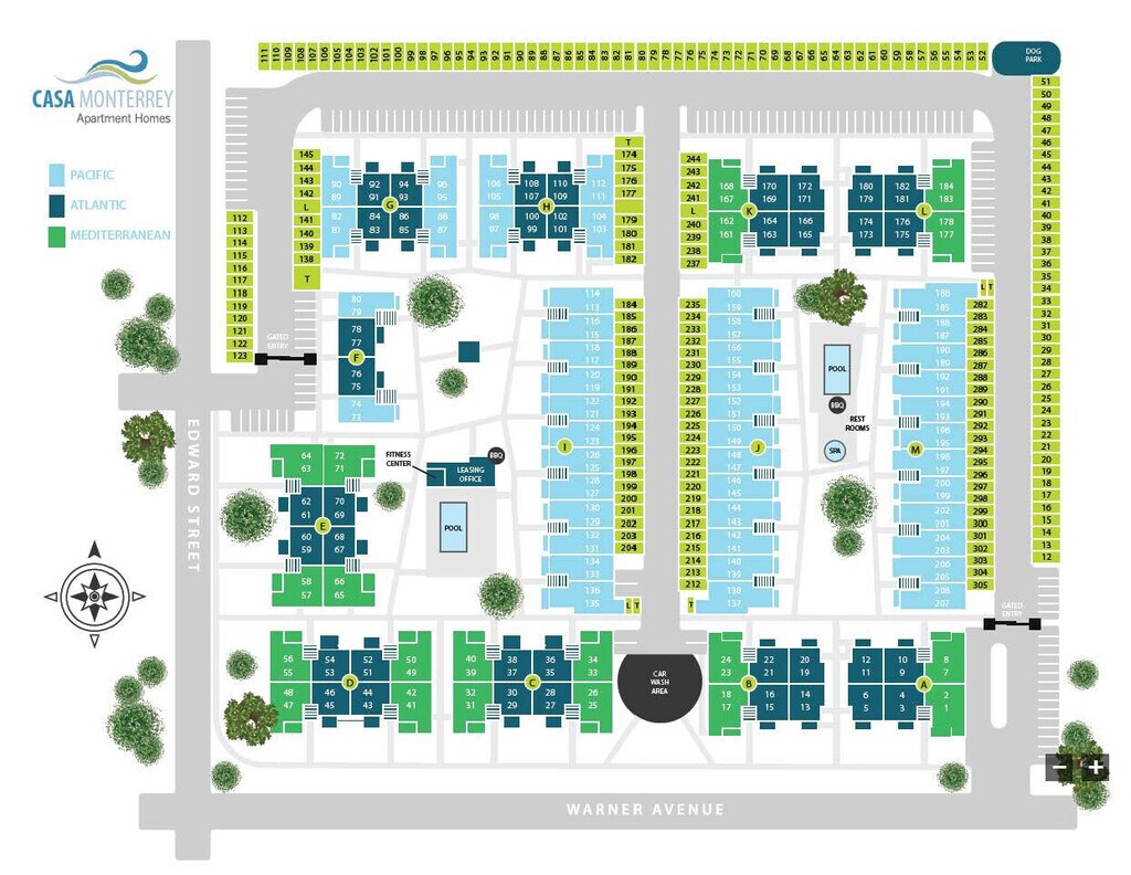Casa Monterrey Apartments se encuentran en 6551 Warner Ave cerca de la zona Goldenwest en Huntington Beach, CA