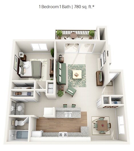1 Dormitorio, 1 Baño, 780 pies²Disponible AhoraGalería del Modelo
