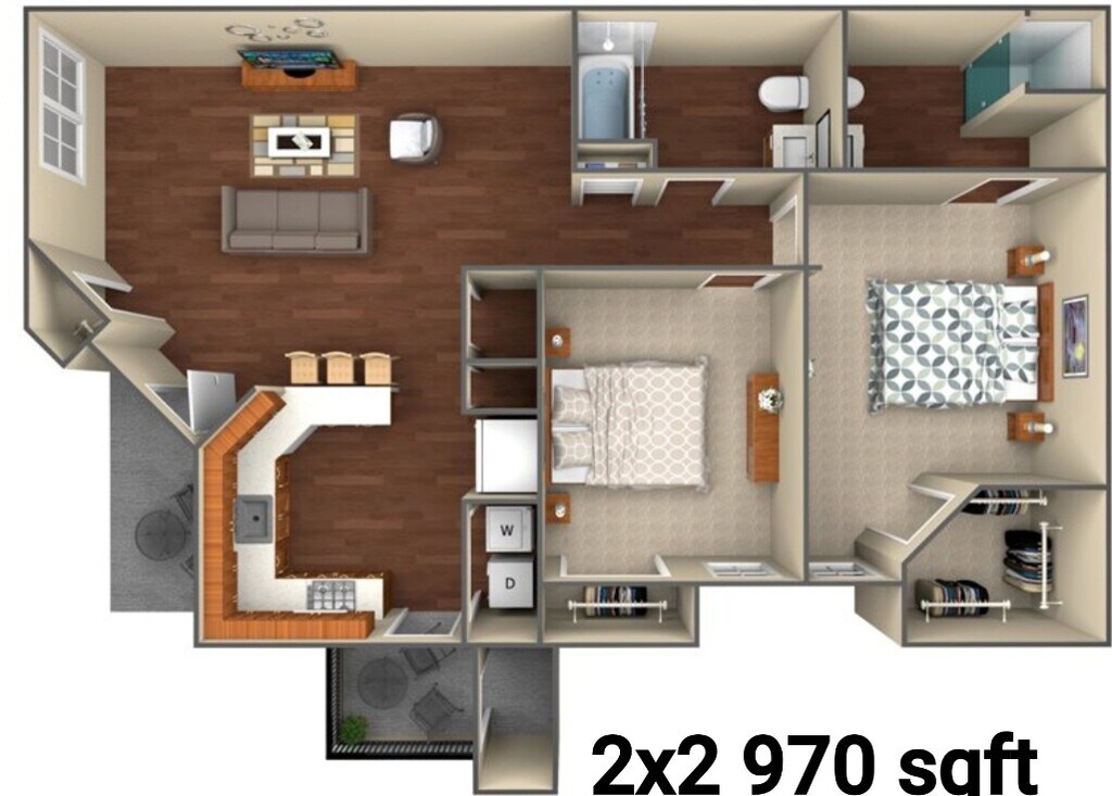2 Dormitorios, 2 Baños, 970 pies²Disponible AhoraGalería del Modelo