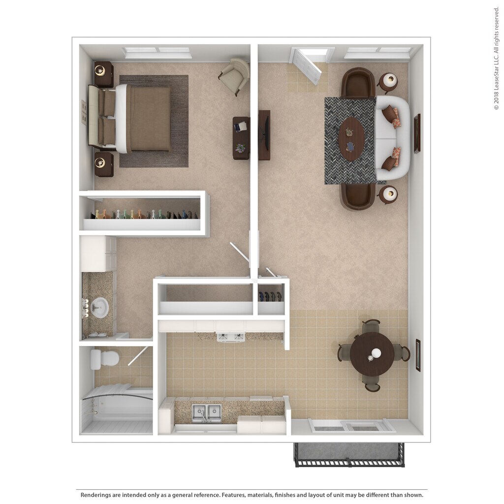 1 Dormitorio, 1 Baño, 660 pies²Disponible AhoraGalería del Modelo