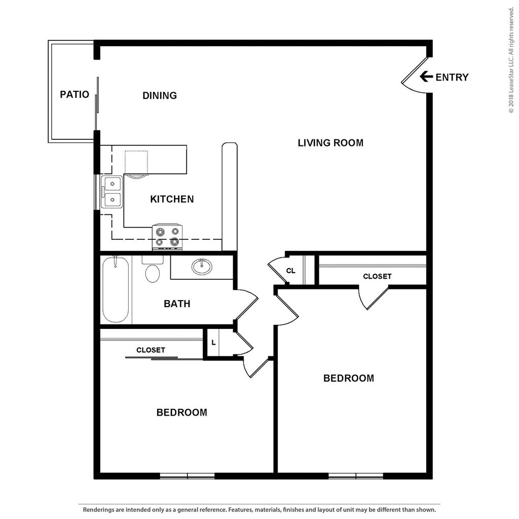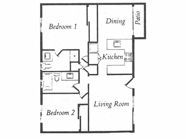 Modelo de apartamento: Plan 2Desde $2,2382 Dormitorios, 1 Baño, 835 sq ftDisponible Ahora![]()