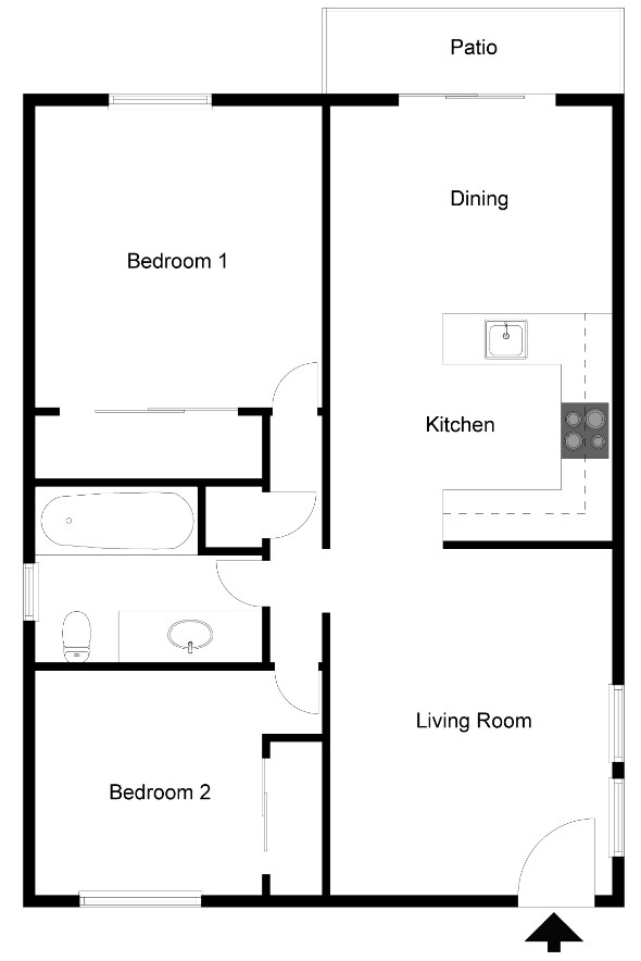 Modelo de apartamento: Plan 1Desde $1,8481 Dormitorio, 1 Baño, 660 sq ftDisponible Ahora![]()