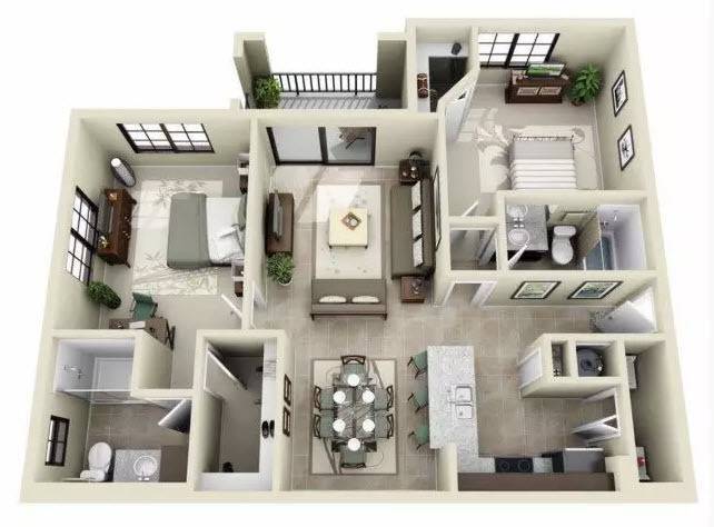 - Uno, dos y hogares de tres habitaciones del apartamento