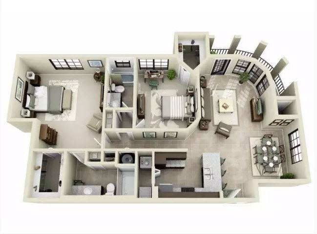 Modelo de apartamento: ArielDesde $2,1711 Dormitorio, 1 Baño, 758 sq ftDisponible Ahora![]()