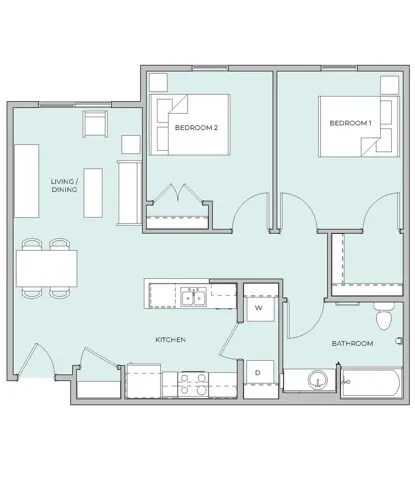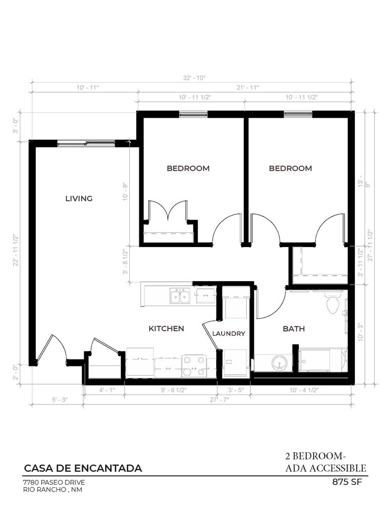 2 Dormitorios, 1 Baño, 870-875 pies²Disponible AhoraGalería del Modelo