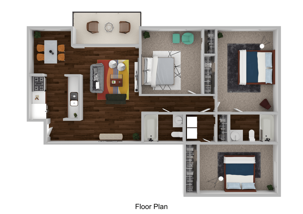 Modelo de apartamento: C3 Dormitorios, 2 Baños, 1183 sq ftDisponible March 6, 2026![]()