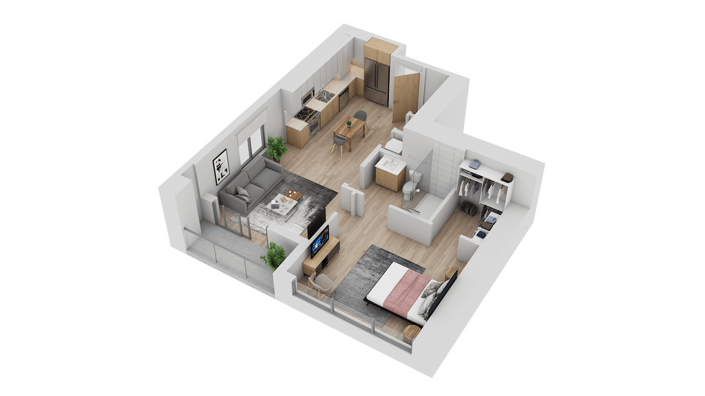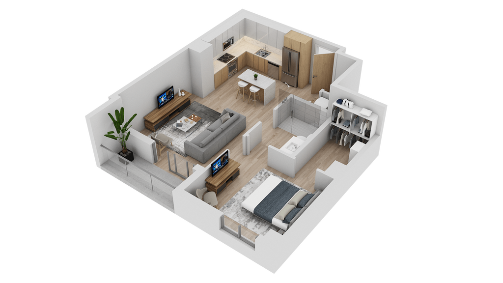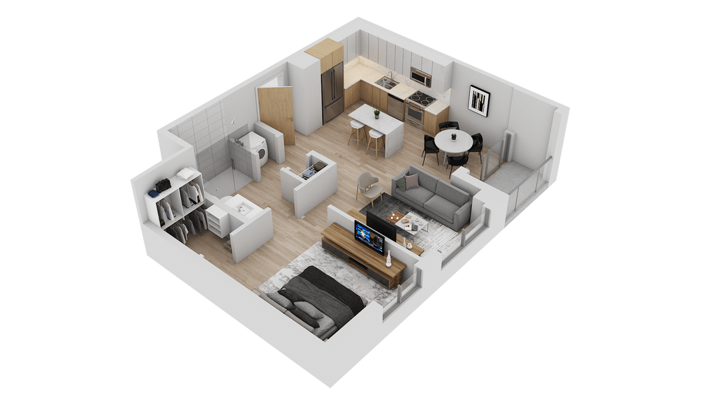 1 Dormitorio, 1 Baño, 738-818 pies²Disponible AhoraGalería del Modelo