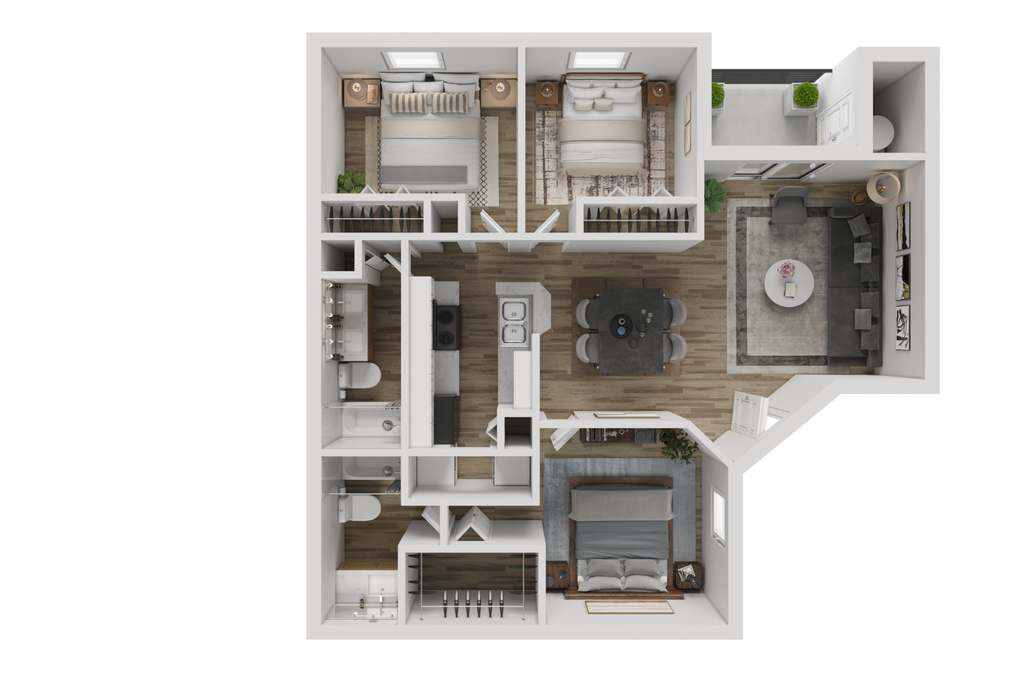 2 Dormitorios, 2 Baños, 1042 pies²Disponible AhoraGalería del Modelo