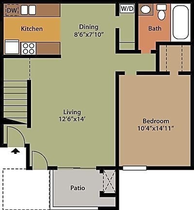 Modelo de apartamento: A1Desde $5501 Dormitorio, 1 Baño, 500 sq ftDisponible AhoraPlanosFotos![]()