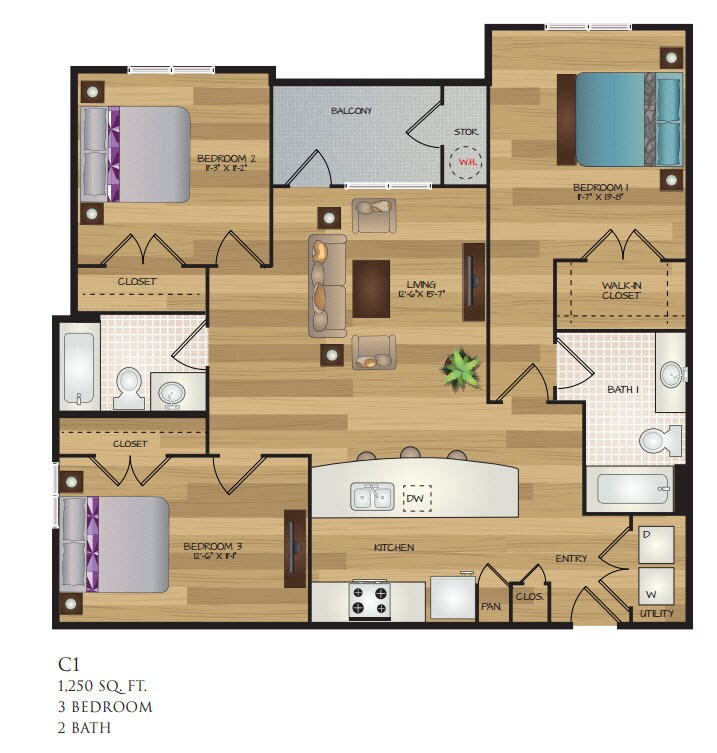 Modelo de apartamento: TaliaDesde $9691 Dormitorio, 1 Baño, 735 sq ftDisponible AhoraPlanosFotos![]()