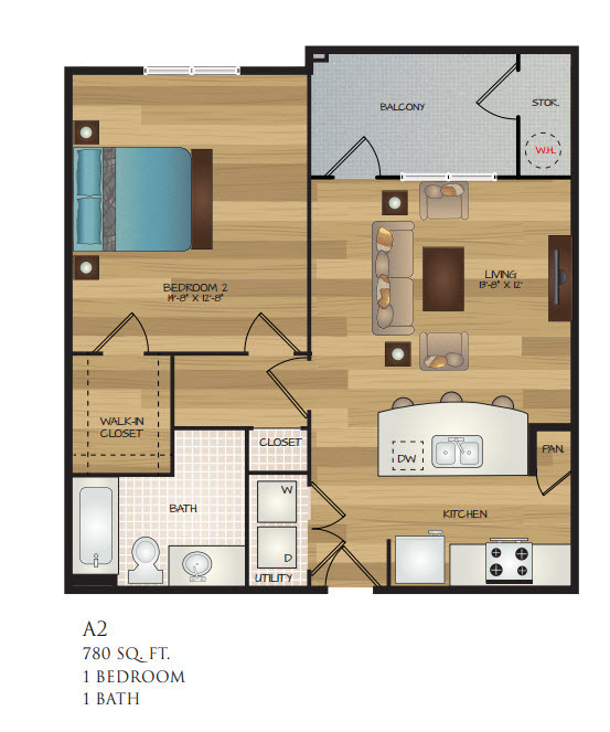 Modelo de apartamento: AssanaDesde $9891 Dormitorio, 1 Baño, 780 sq ftDisponible AhoraPlanosFotos![]()