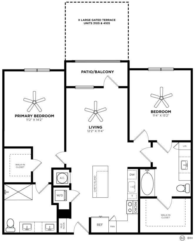 Modelo de apartamento: A3-AzureDesde $2,3451 Dormitorio, 1 Baño, 804 sq ftDisponible Ahora![]()