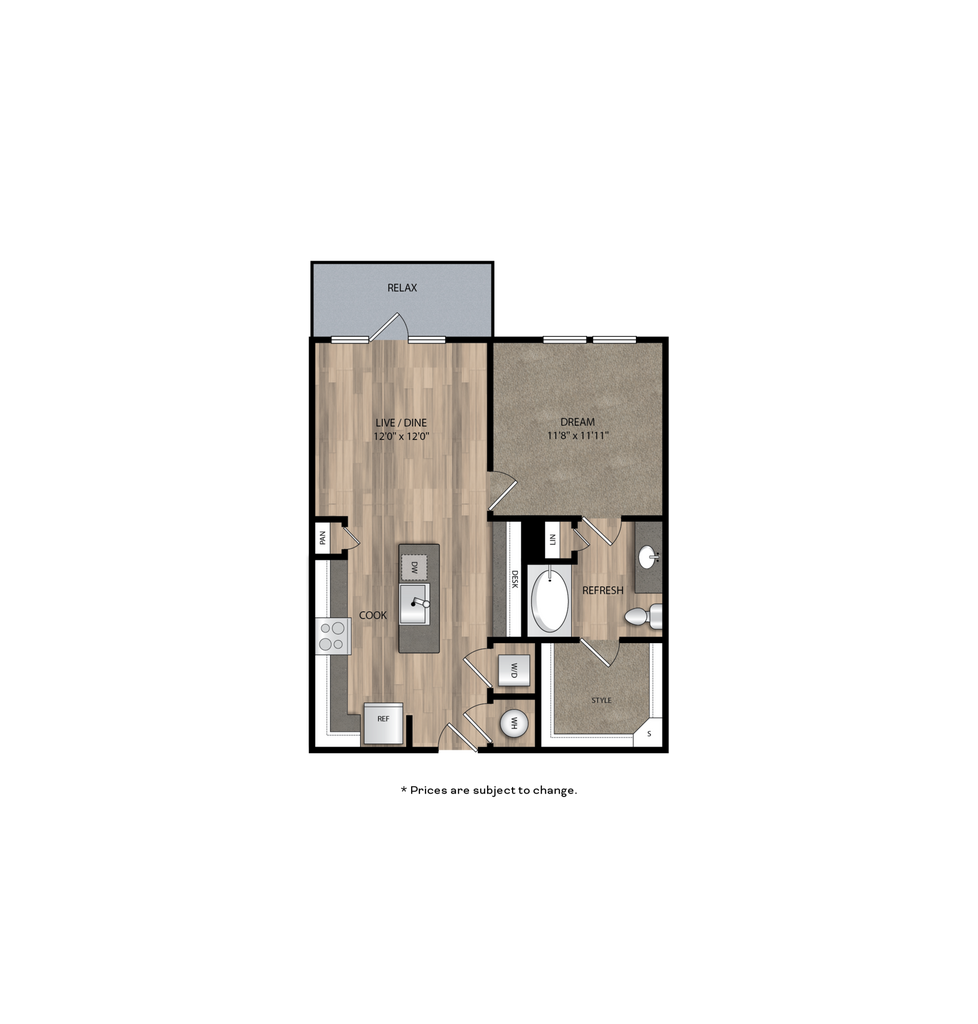 Estudio, 1 Baño, 571 pies²Disponible AhoraGalería del Modelo