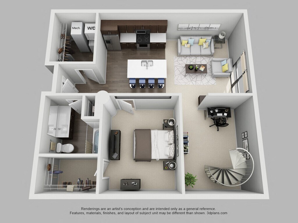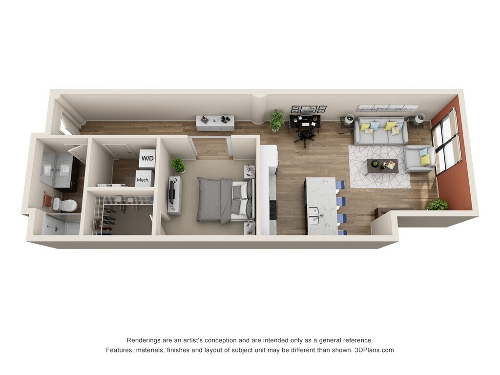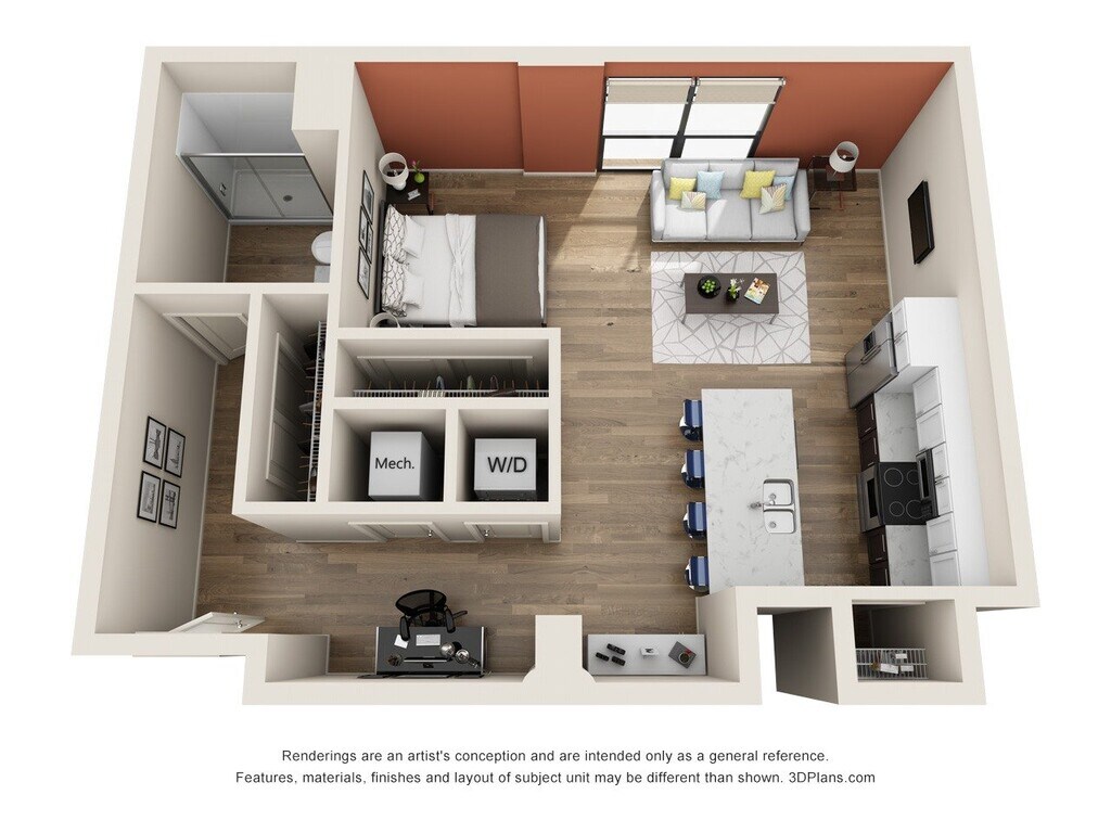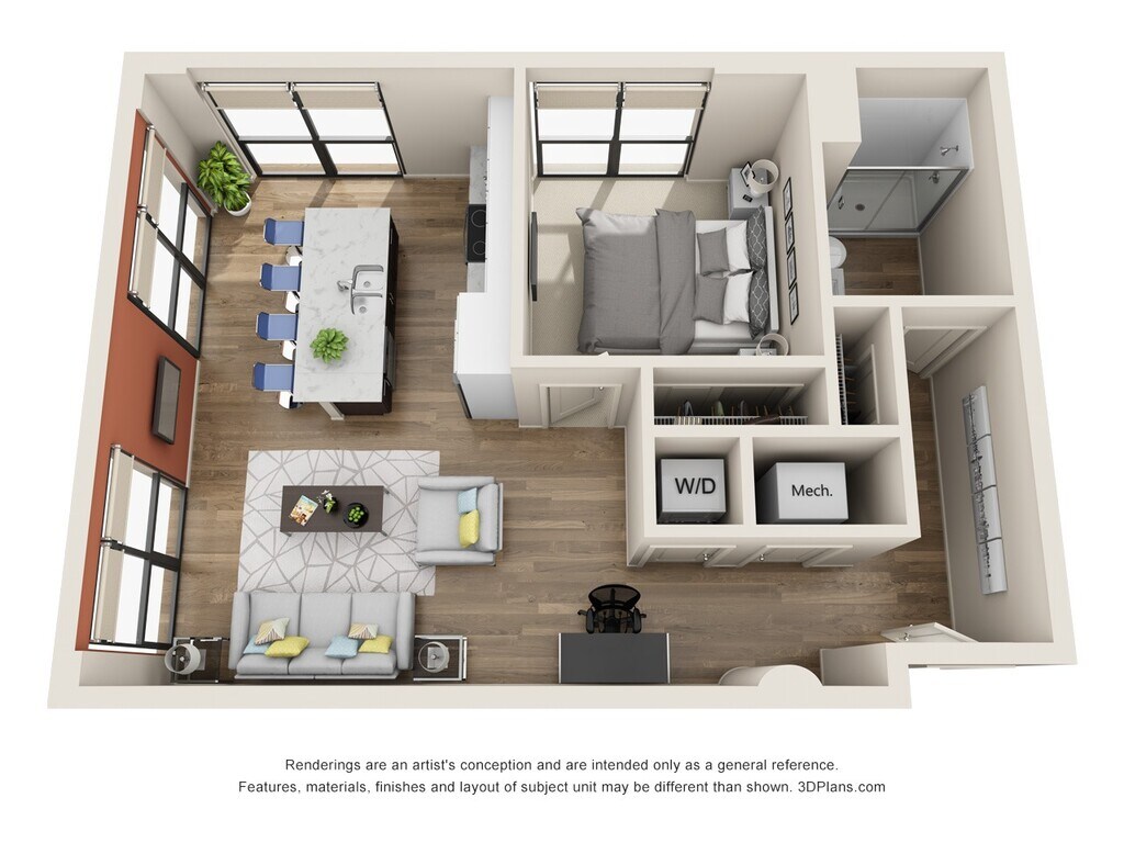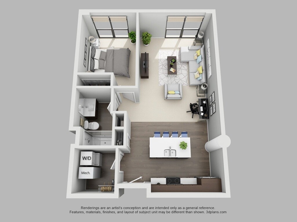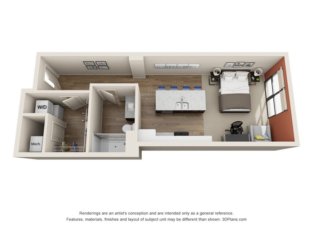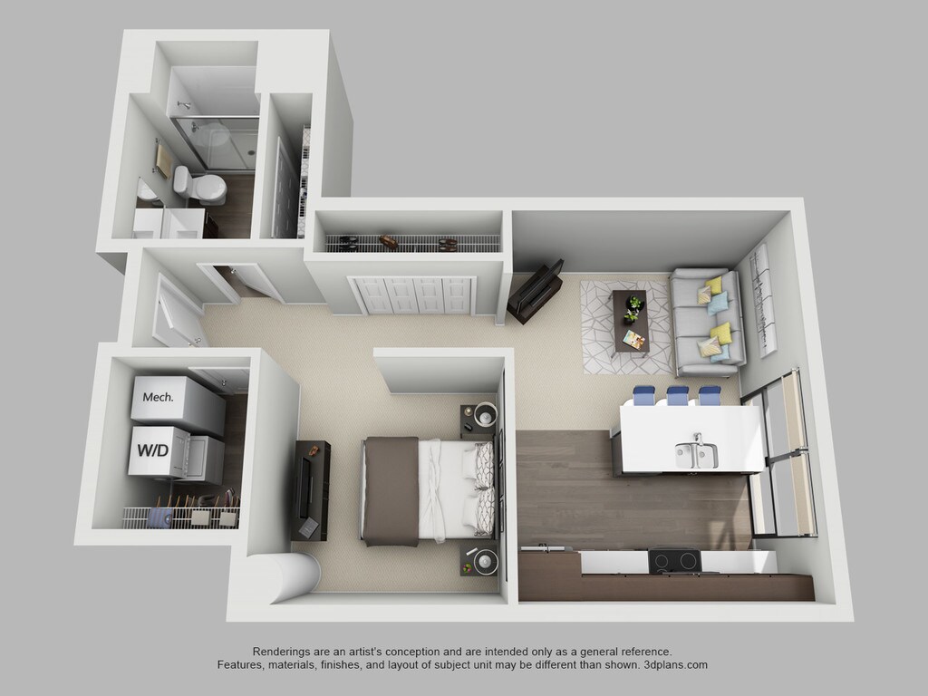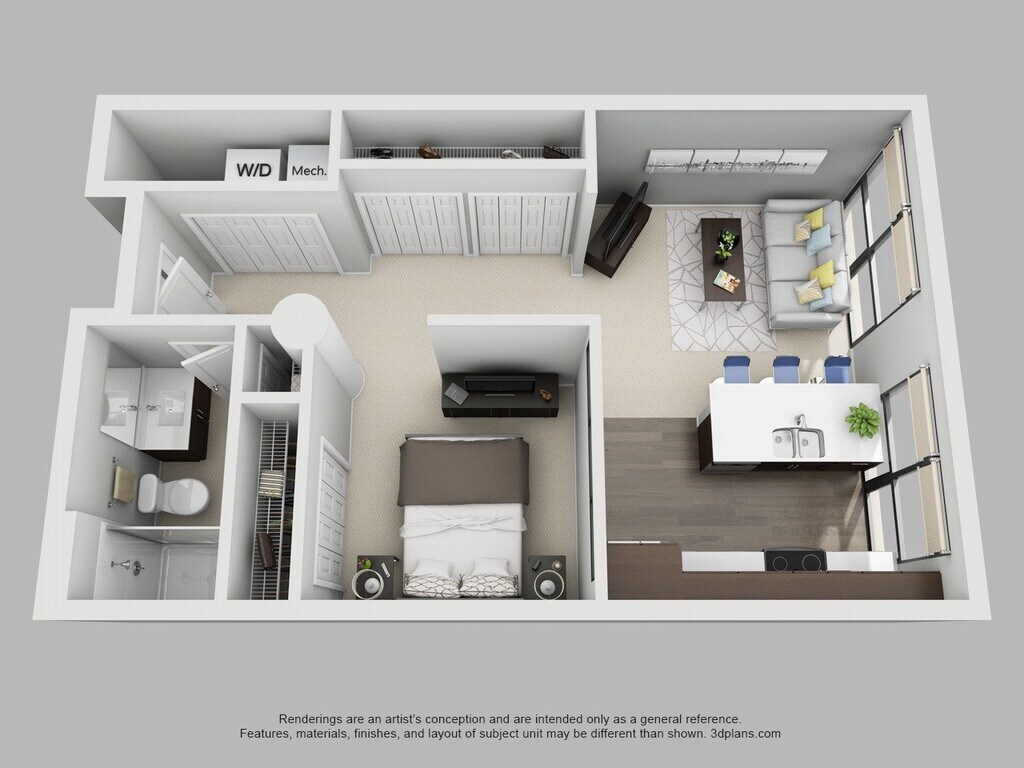 Estudio, 1 Baño, 594-613 pies²Galería del Modelo