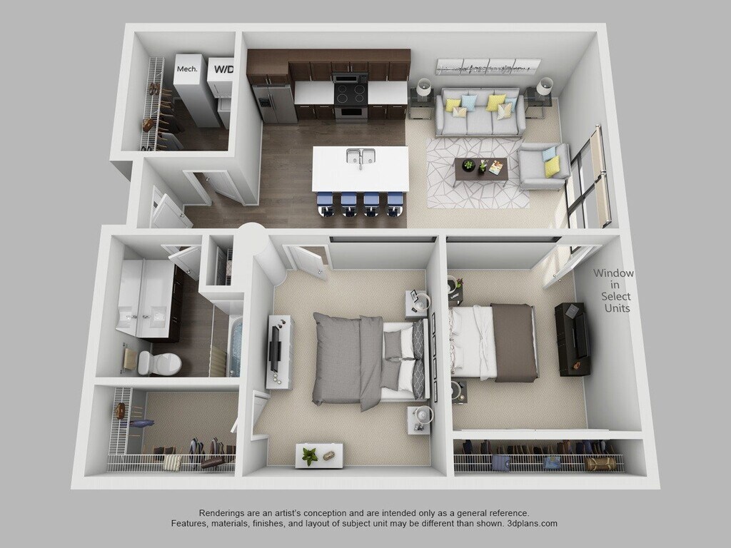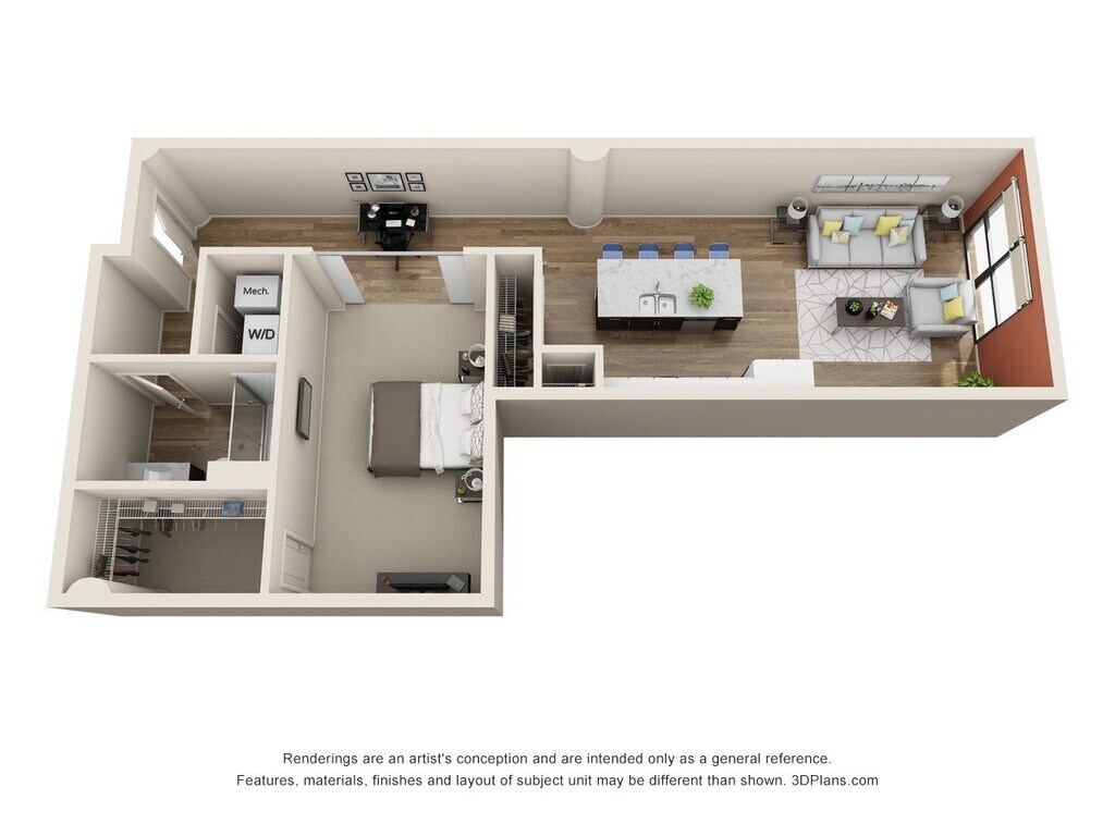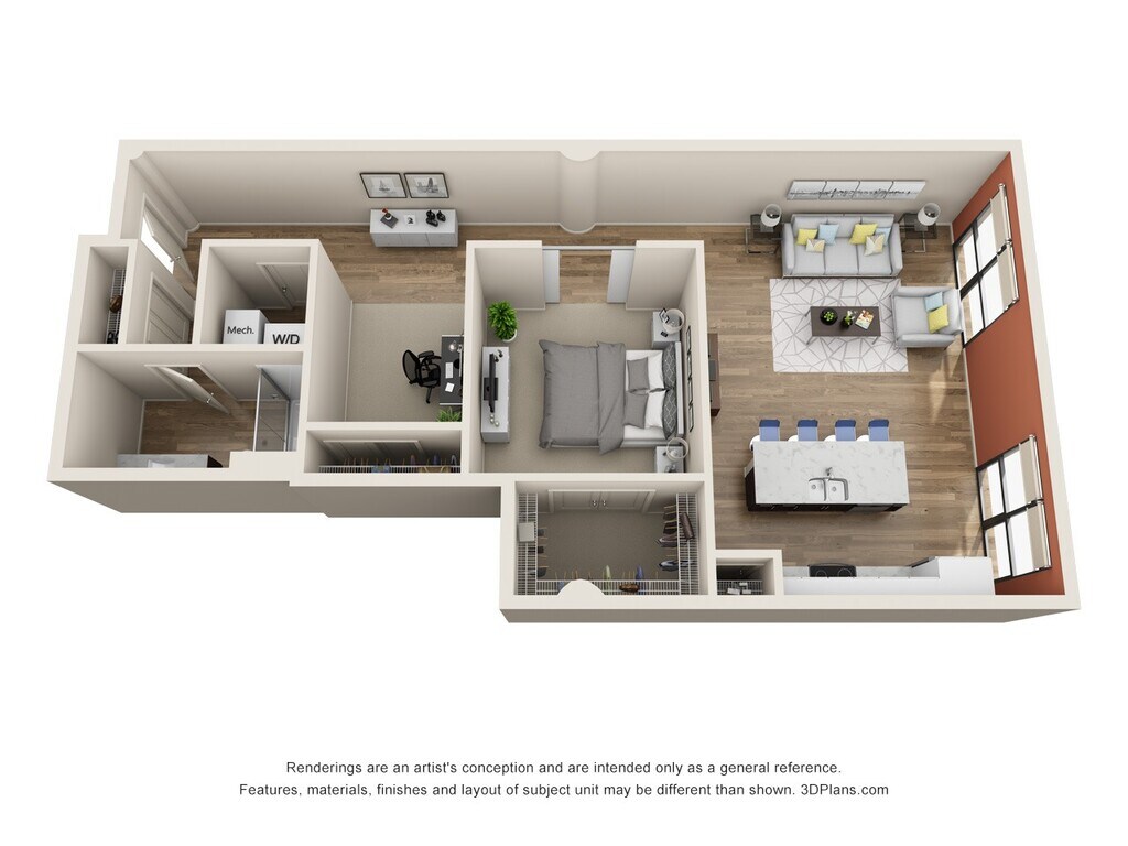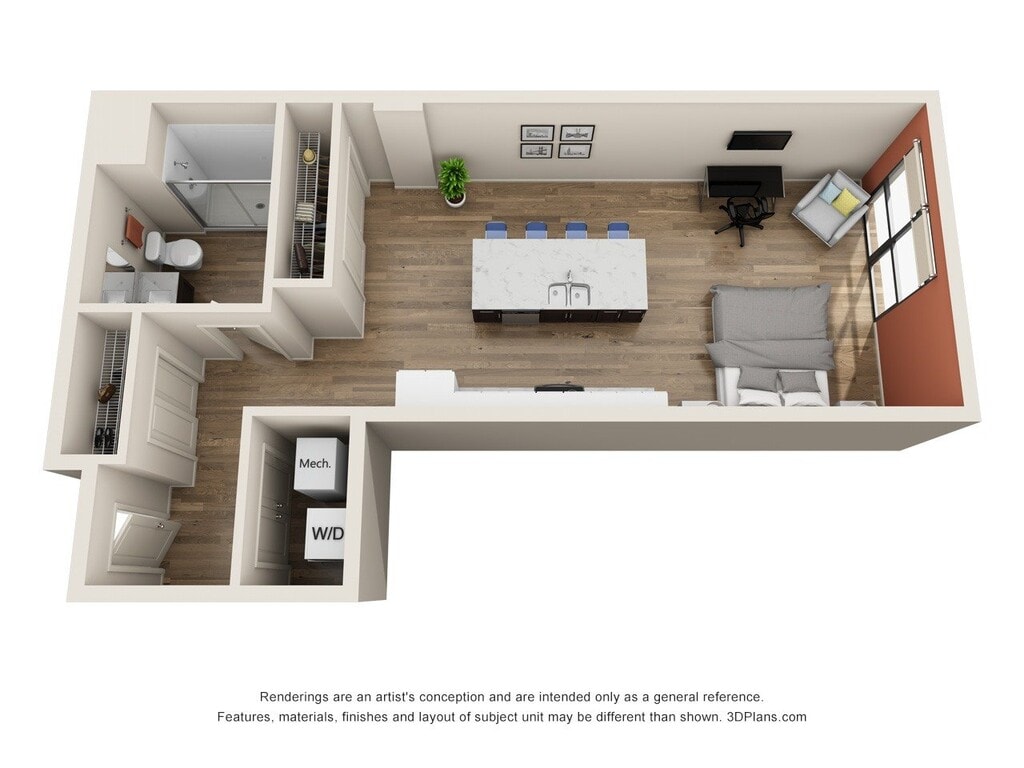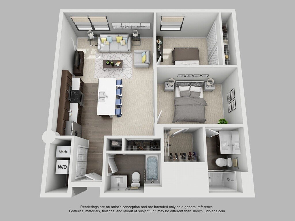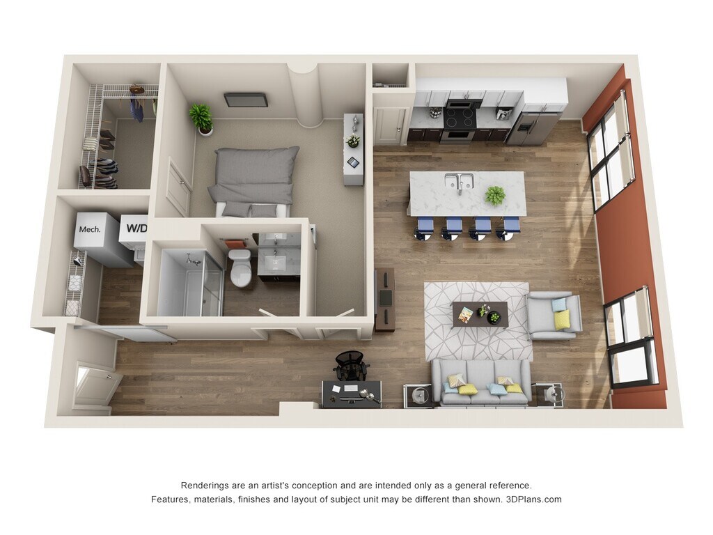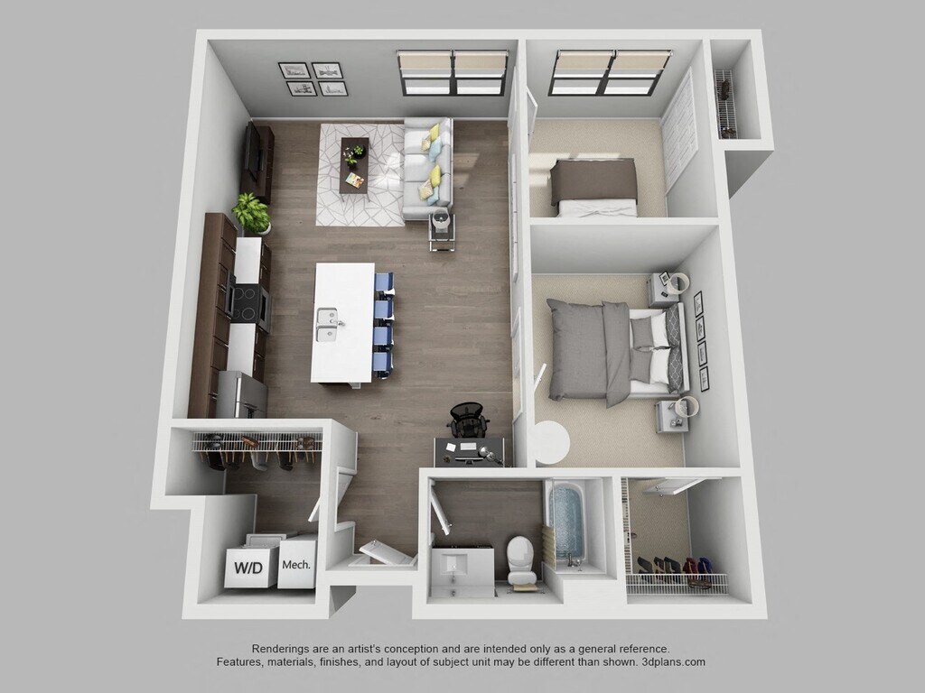 Estudio, 1 Baño, 594-613 pies²Galería del Modelo
