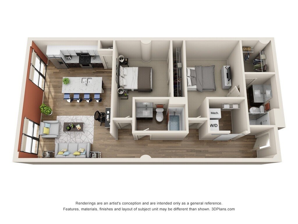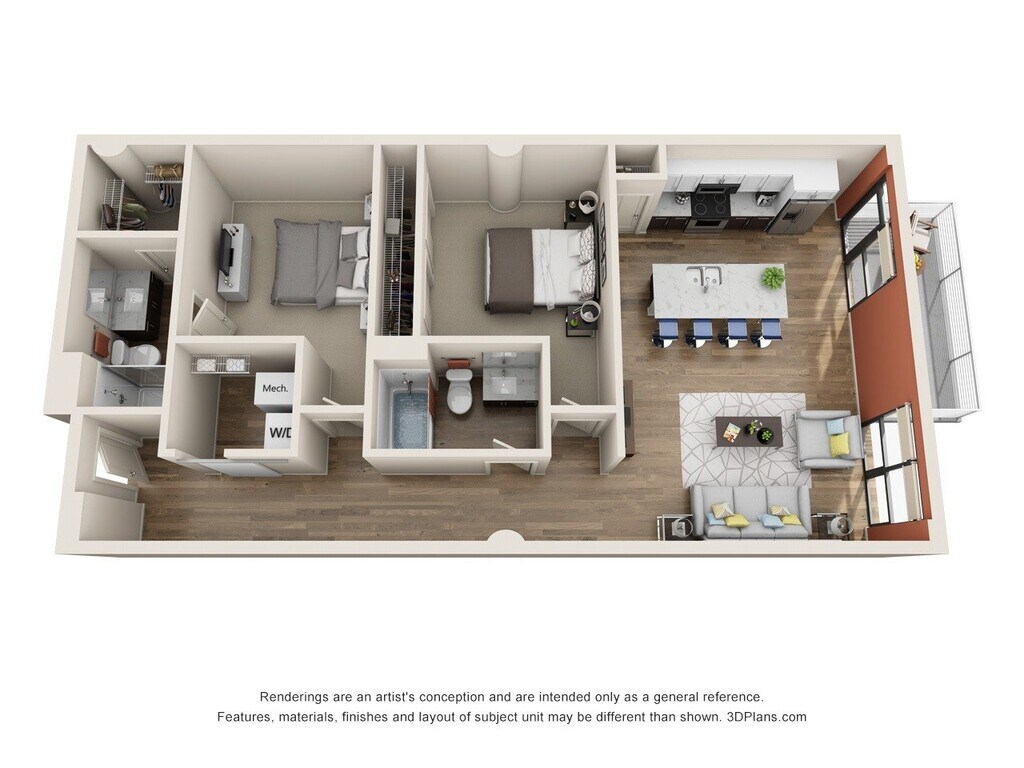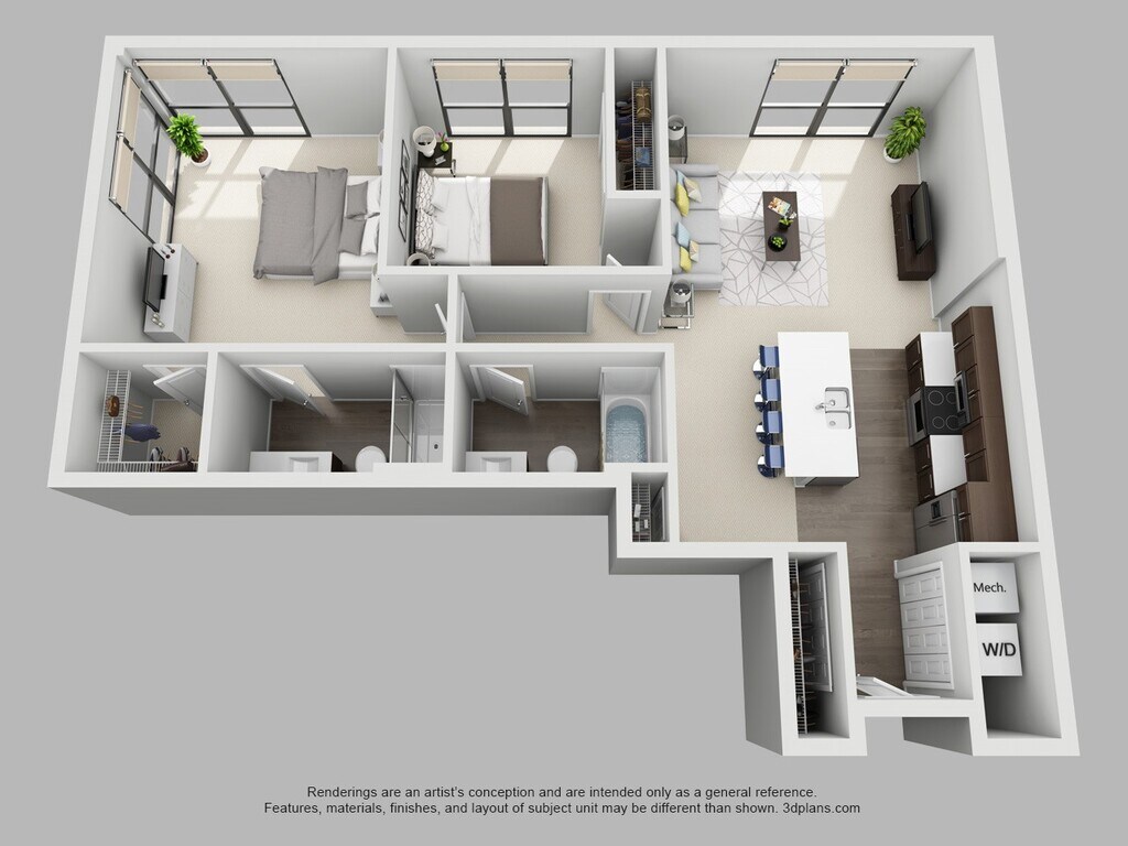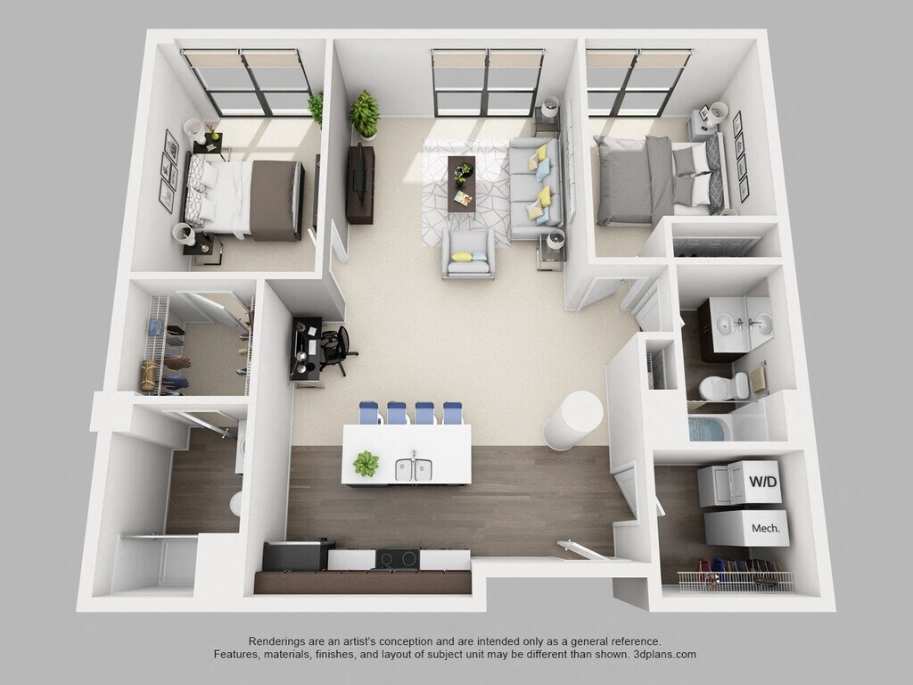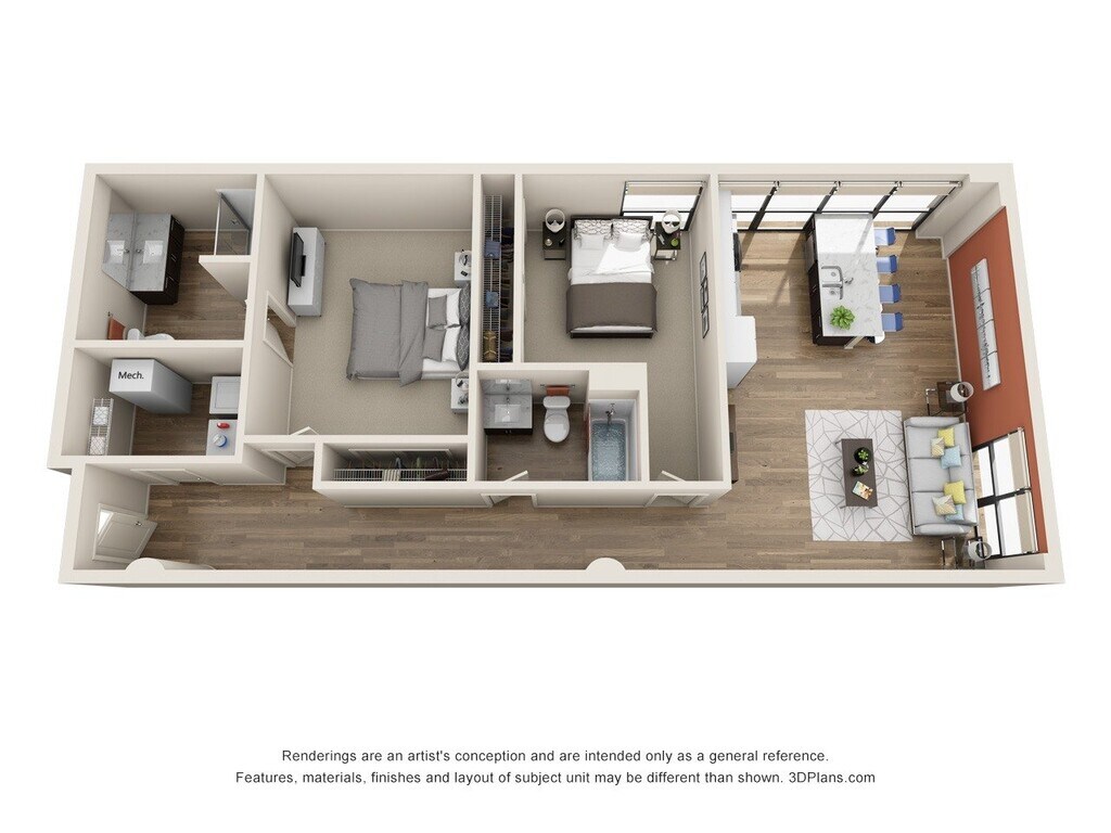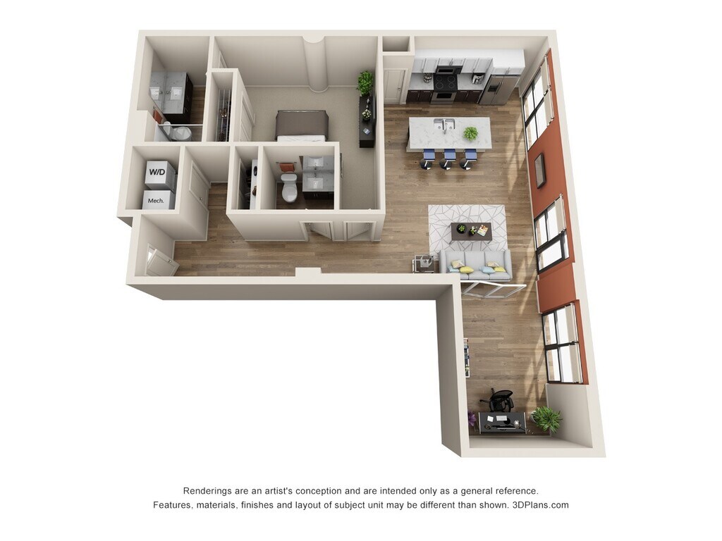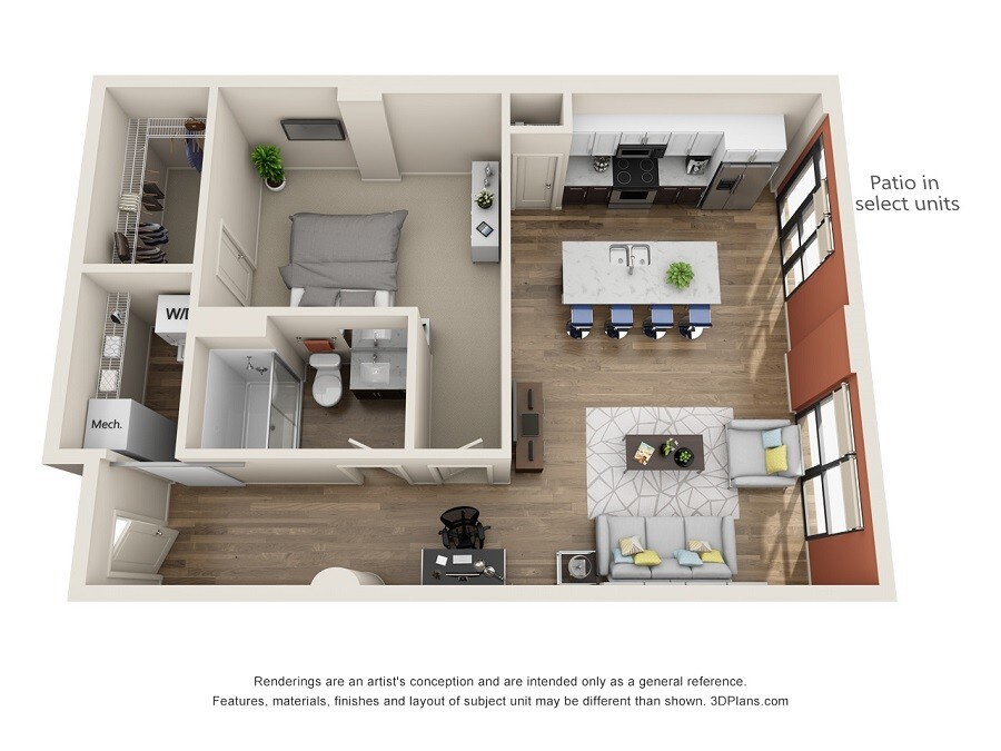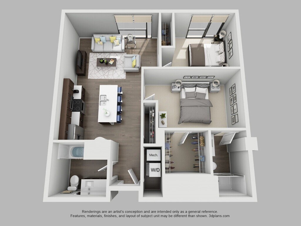 Estudio, 1 Baño, 594-613 pies²Galería del Modelo