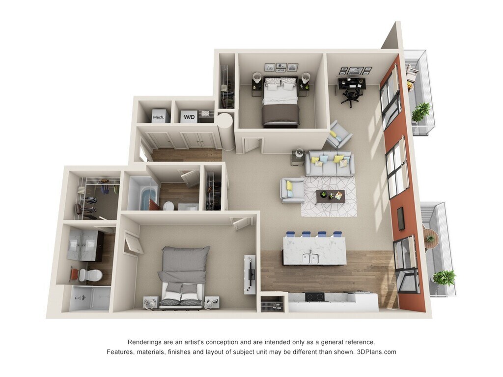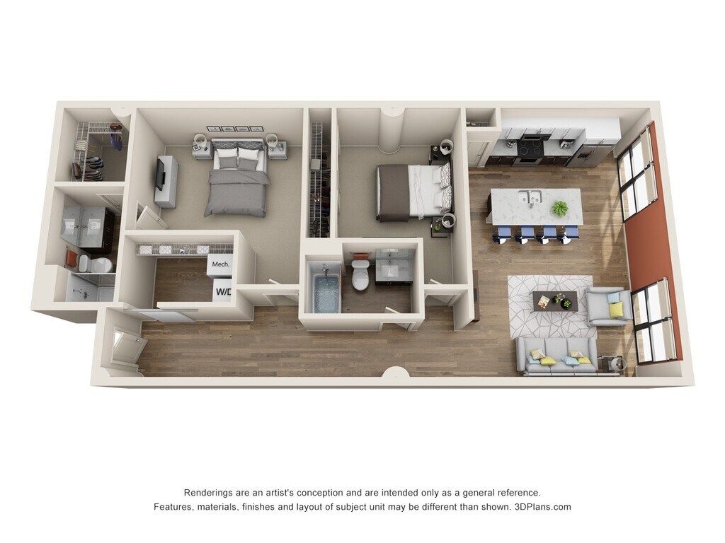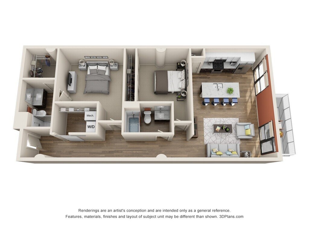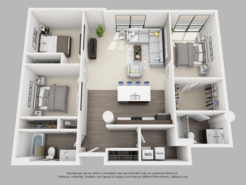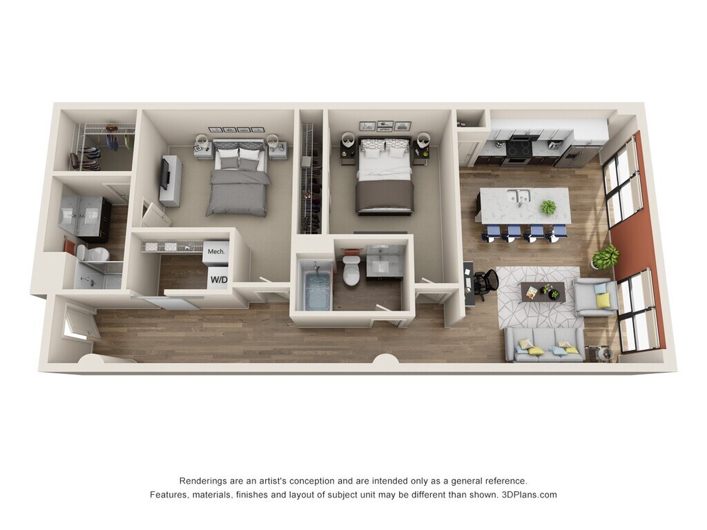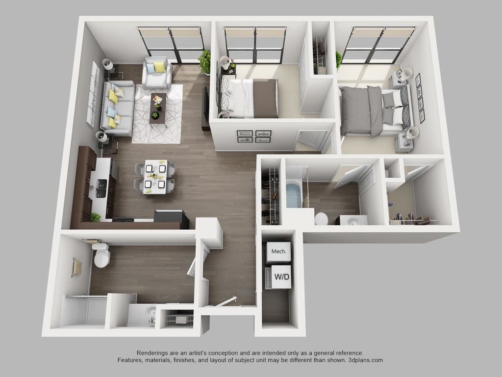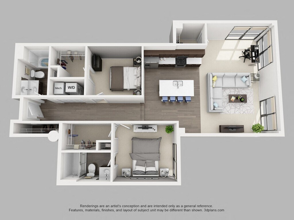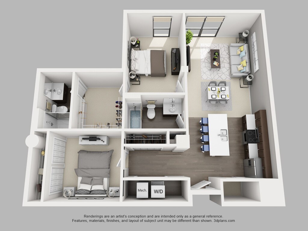 Estudio, 1 Baño, 594-613 pies²Galería del Modelo