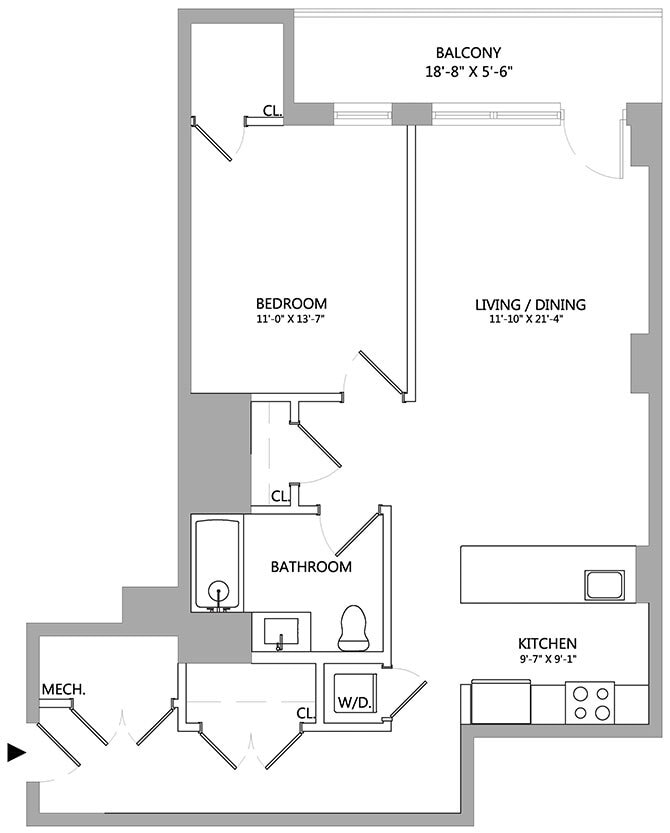 1 Bed/1 Bath-5-6J - Plano 1 ![]()