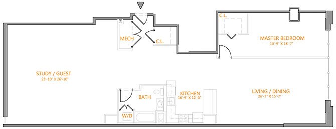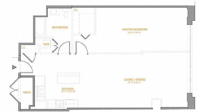 Estudio, 1 Baño, 885 pies²Galería del Modelo